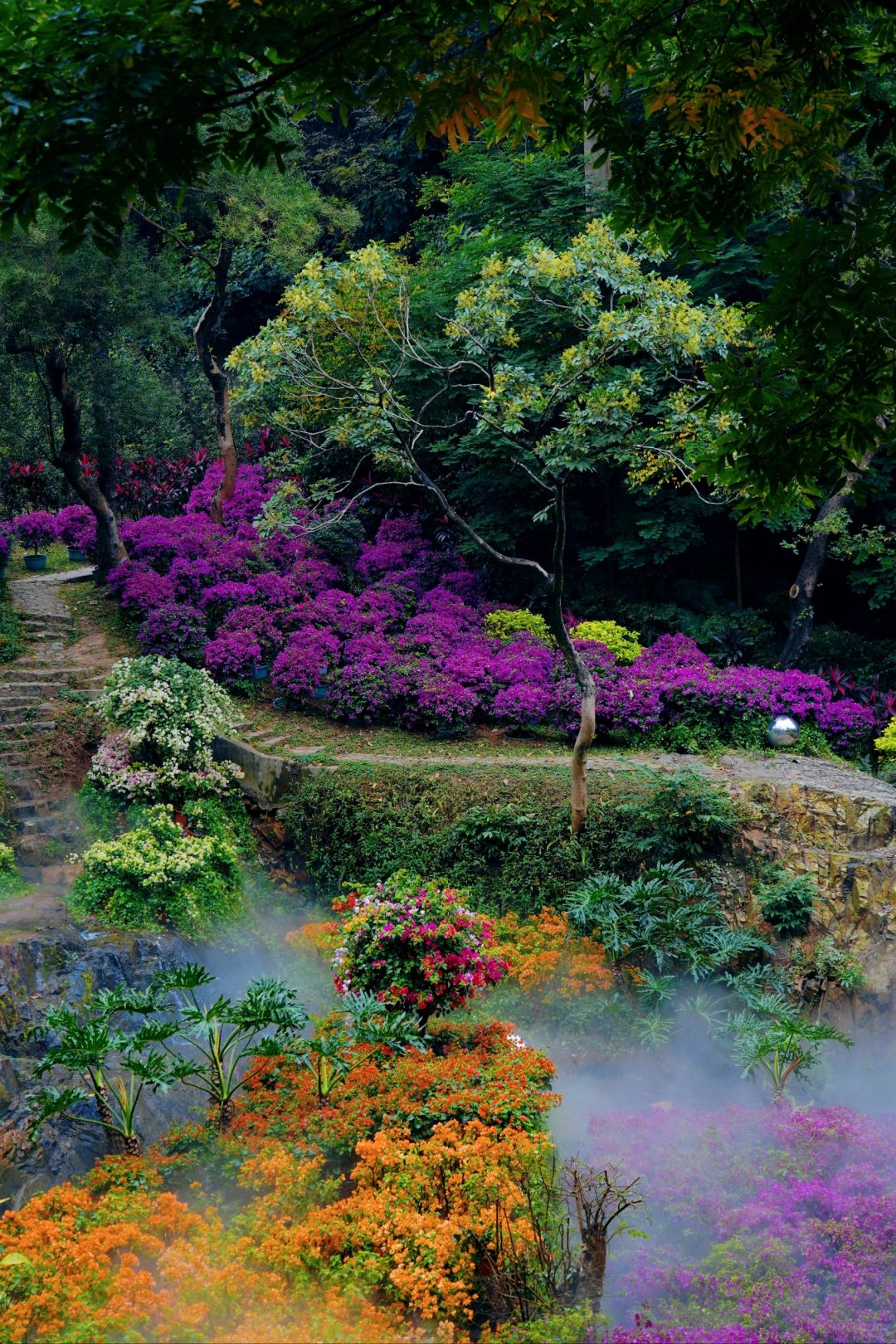 🔸蒲林草坪:山间草坪处的一片簕杜鹃,会是不是有雾气升腾,有点儿仙