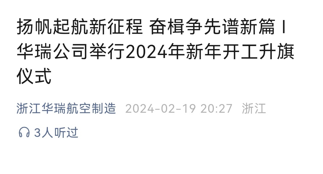#烽火问鼎计划#旧闻一则:2024年2月19日,浙江华瑞航空制造公司宣布距离20