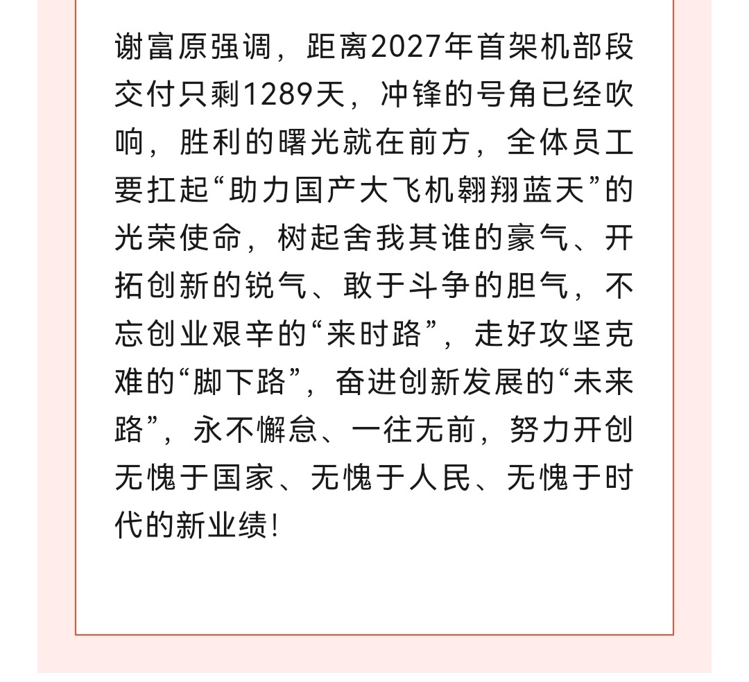 #烽火问鼎计划#旧闻一则:2024年2月19日,浙江华瑞航空制造公司宣布距离2027年C929首架机部段交付只剩1289天。