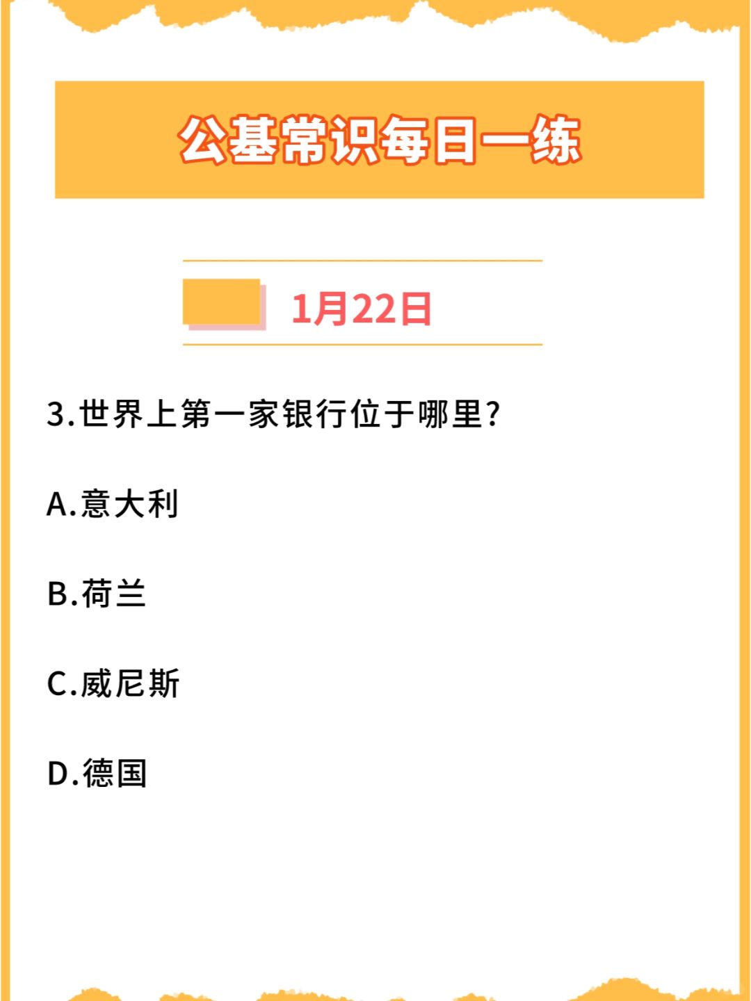 1.黄瓜的原名是? A.金瓜 B.胡瓜 C.长瓜 D.绿瓜 2.五谷中的“菽”指的是什么? A.麦子 B.大豆 C.谷子 D.高梁 3.世界上第一家银行位于哪里?( A.意大利 B.荷兰 C.威尼斯 D.德国