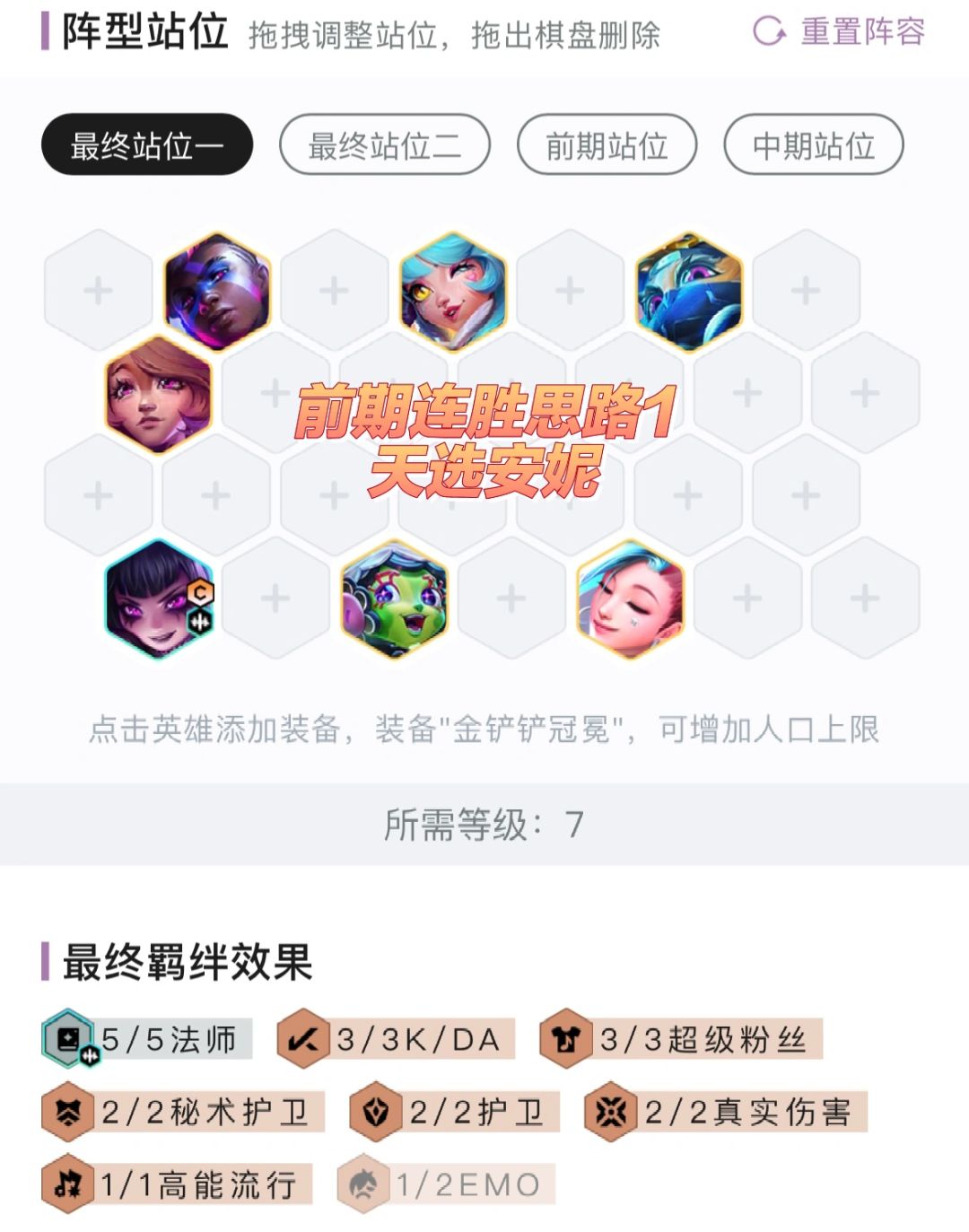 前期过渡比较多,这里给大家推荐几套能连胜的玩法,遇到对应的天选可以去套公式,总的来说还是熟能生巧,多玩自己应变能力会逐步提升。