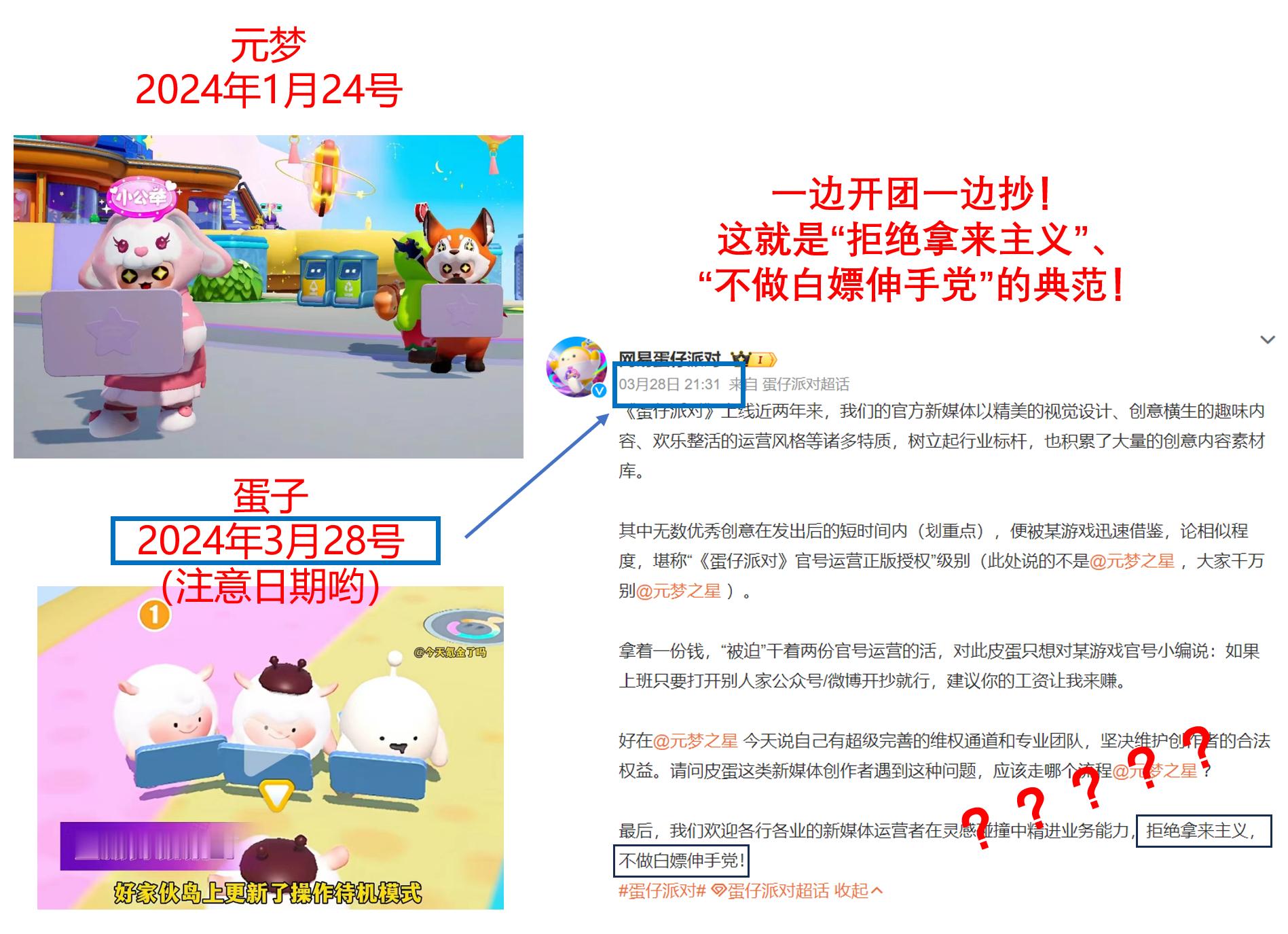 蛋仔派对圈元梦之星事件的后续来了!元梦之星刚刚回应,po出被模仿的特色活动对比图