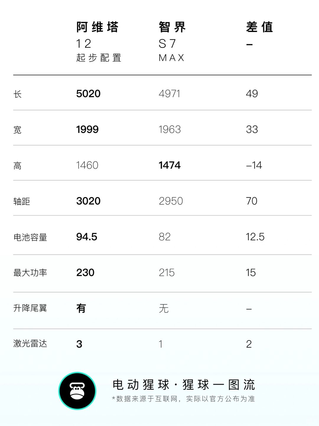 阿维塔的尺寸要稍大一些,这里就不展开讲了