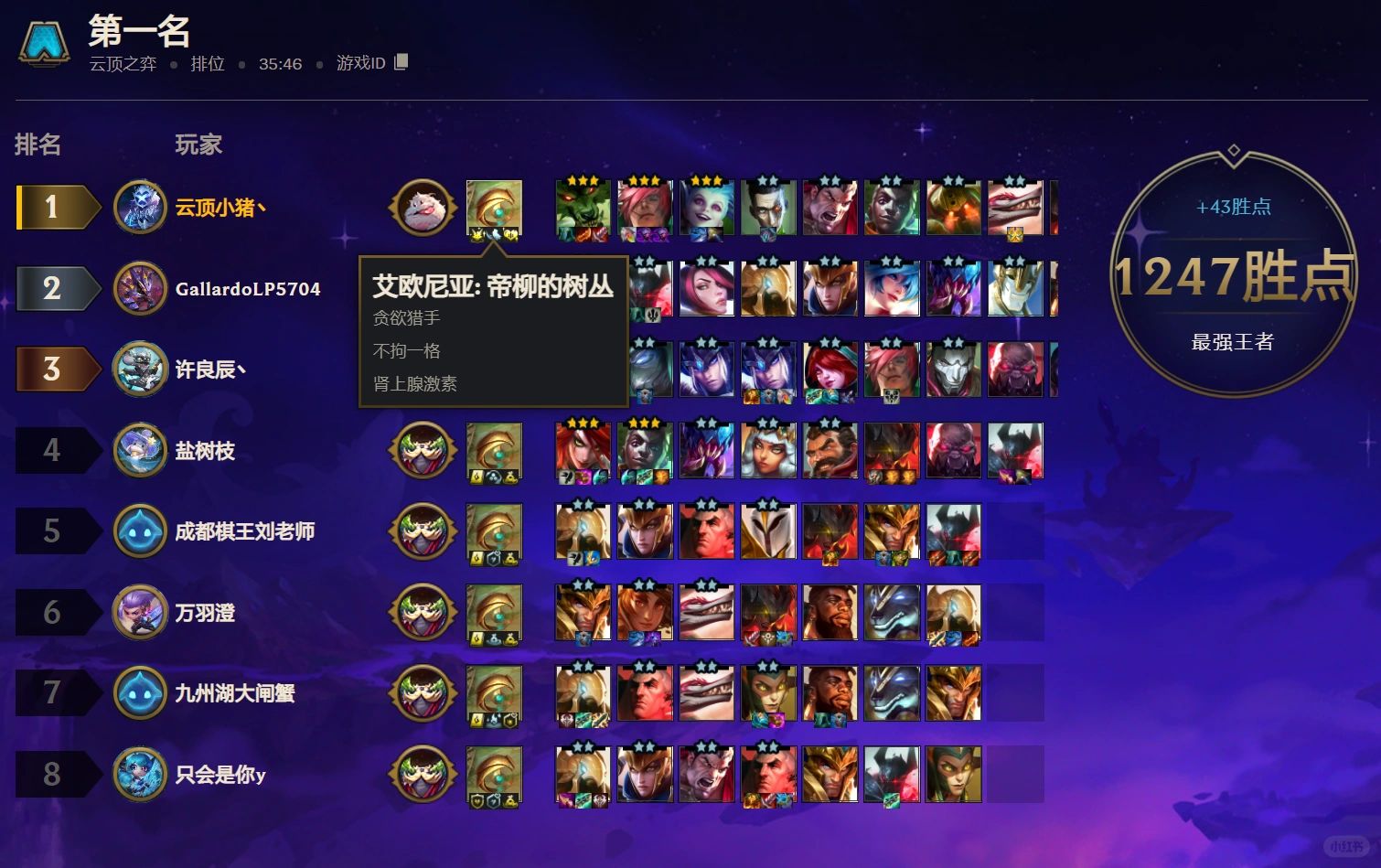 开局刷出贪欲猎手海克斯再玩,否则强度低一截,中期没有稳定的连胜节奏点。