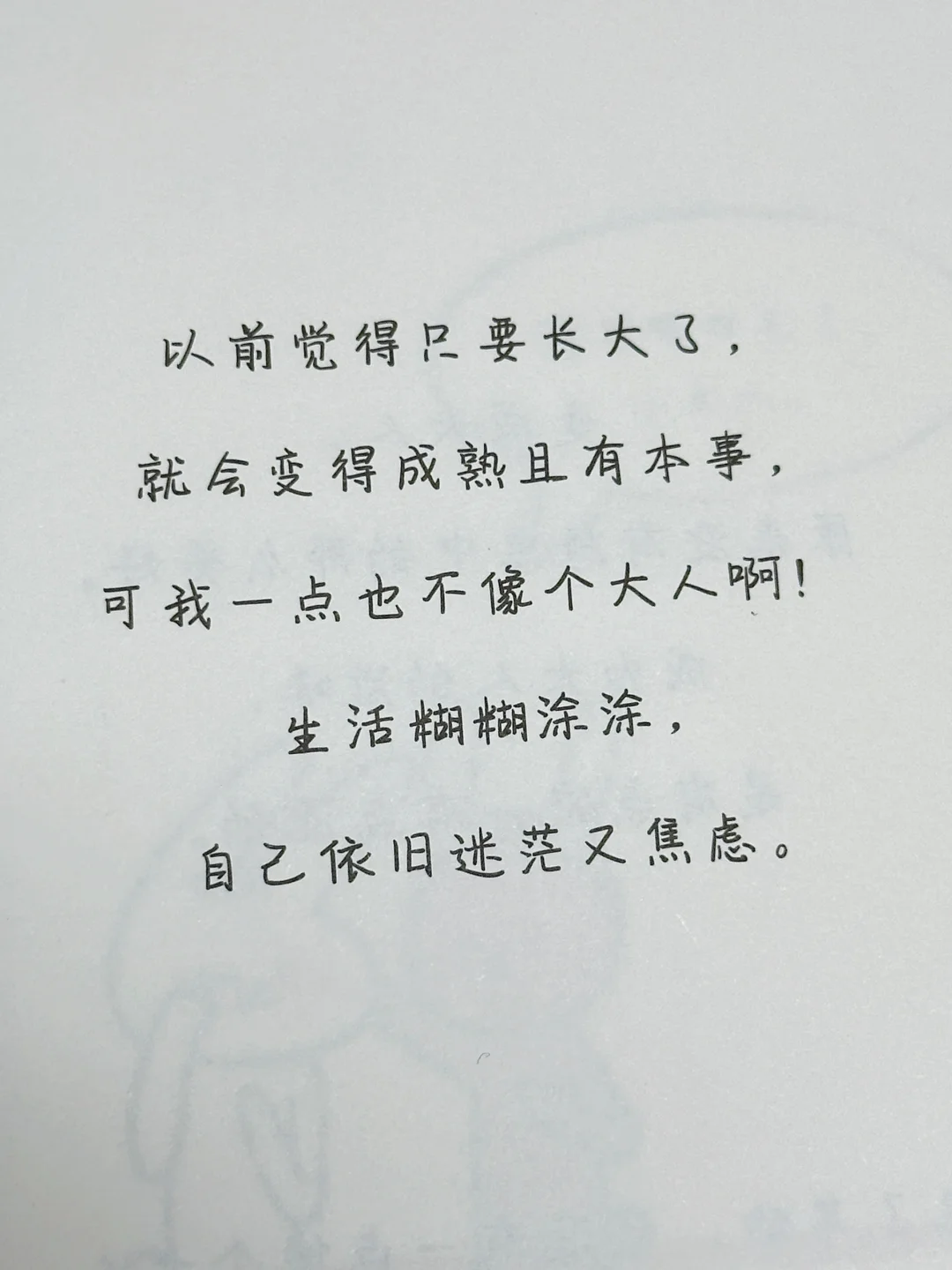 😔可是,我似乎还没有准备好,就被时间催促着到了必须要懂事的年纪。那么多完不成的工作,那么多实现不了的梦想,那么多复杂的人情世故,还有那么多意想不到的失败...做大人好像真的很辛苦啊!