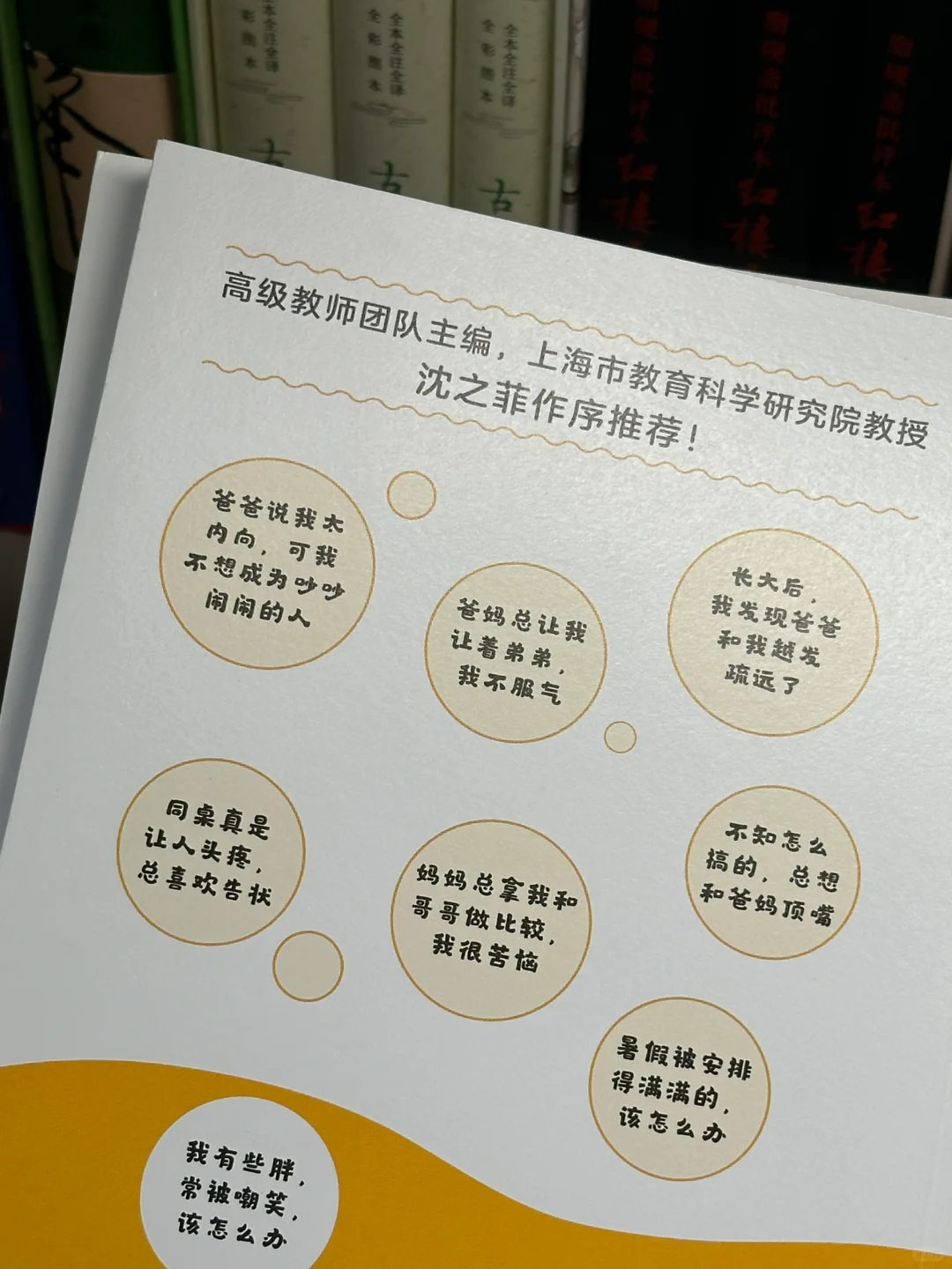 这套书以“促进儿童心理健康”为宗旨,汇集了85个由小学生提出的烦恼和心理困惑,并由专家指导小学生用自己的语言提出专业性的建议,通过爱的漂流,帮助孩子消除在学校和家庭中遇到的各种烦恼,增强孩子的心理自助能力,拥有更加积极的人生。