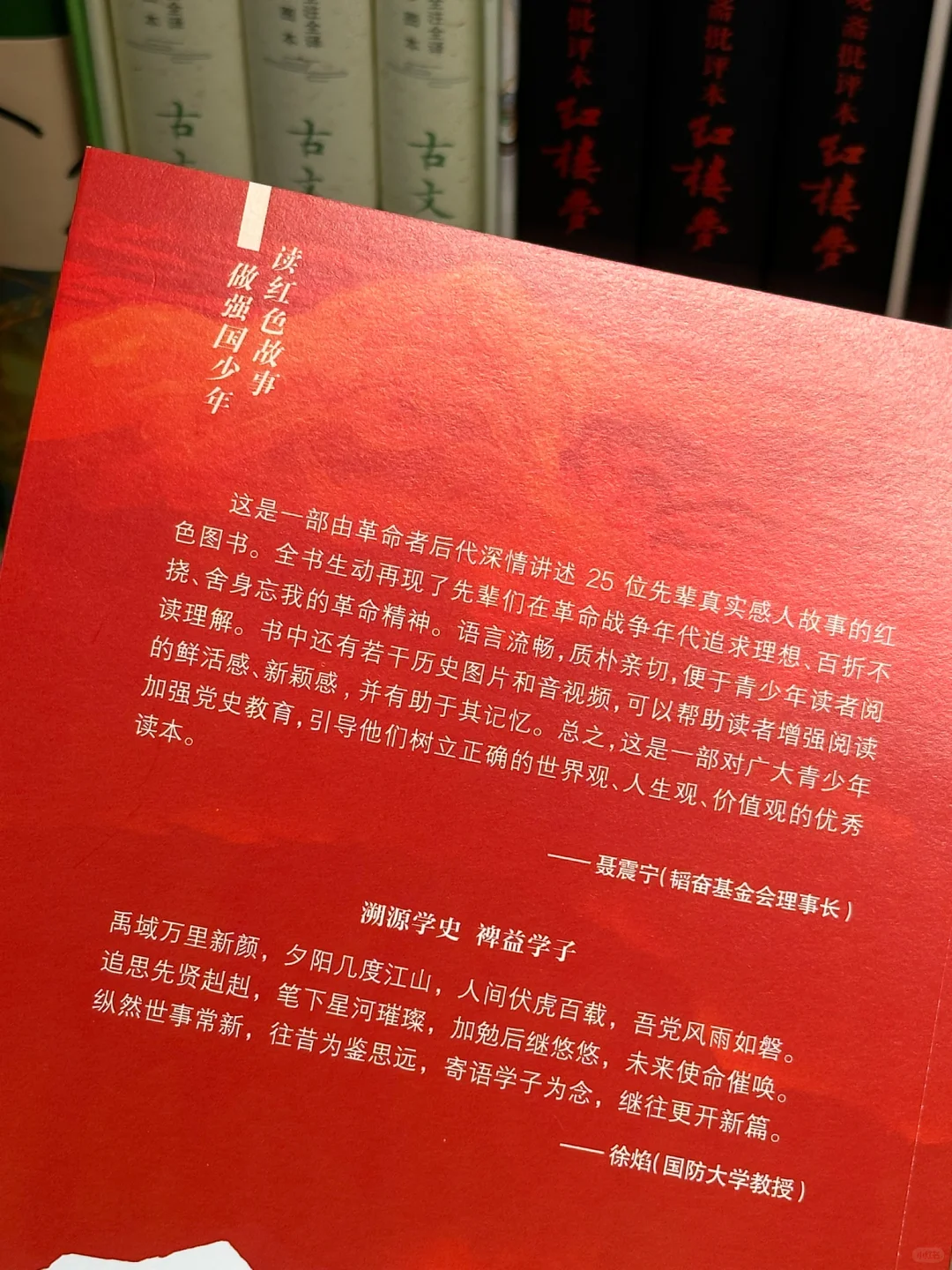 这本书精选了25位革命先辈的故事,以革命者后代的视角,秉持既对历史负责又对现实负责、既对前人负责又对后人负责的态度,与先辈们进行跨越时空的对话,深情讲述了他们的英雄故事,以情动人,以小见大,使先辈们的英雄事迹穿越历史长河,给孩子们以启迪和力量。