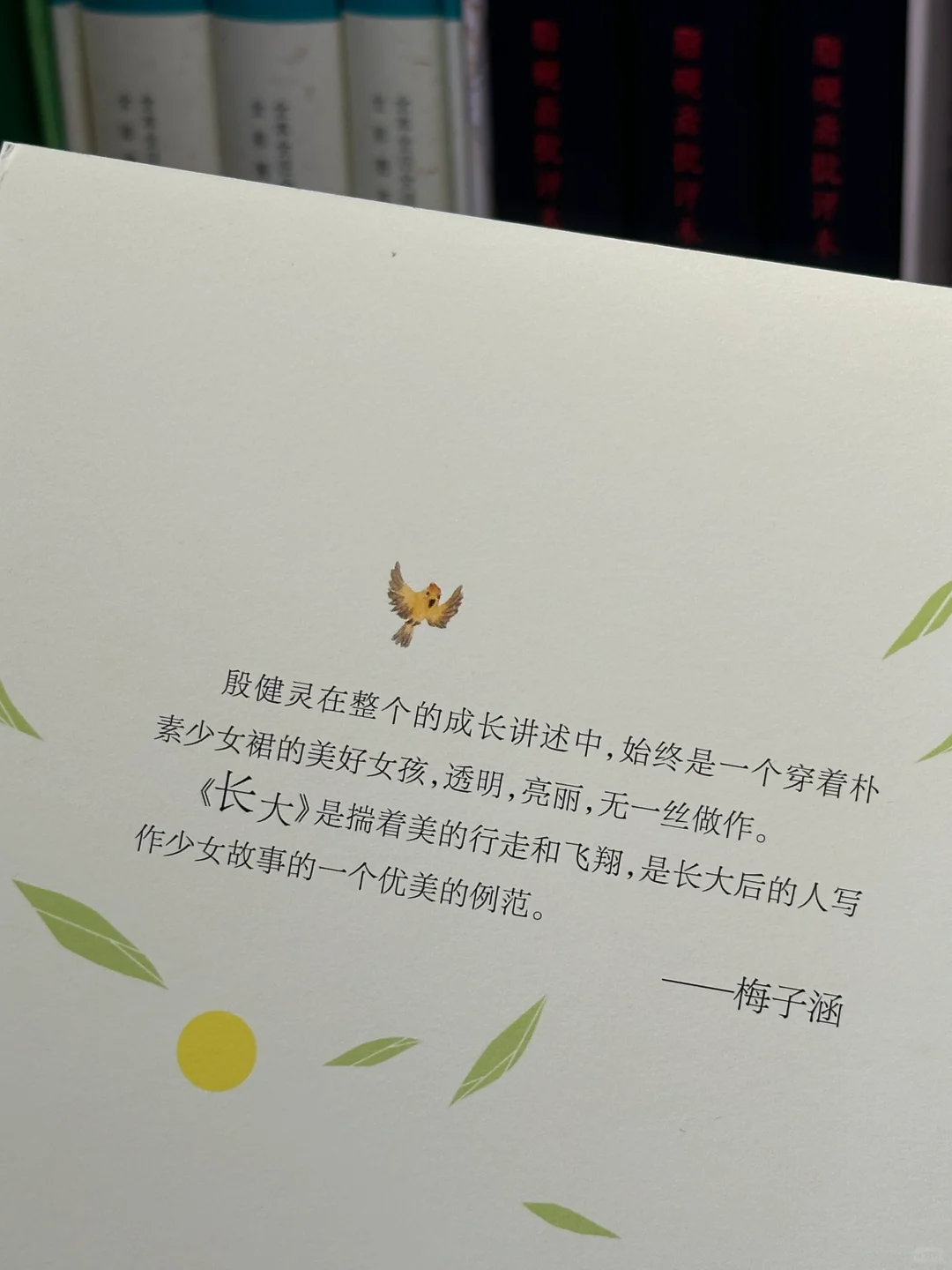 “长大是一件值得庆祝的事情,生命也是越来越宽阔。南行的鸟儿还会归来,密林的深处也有人家,阳光下的花儿,当然会开得更明媚。”这是一个女孩慢慢长大的故事,是一部坦诚的女孩成长史,是所有女孩从懵懂到成熟的青春历程。