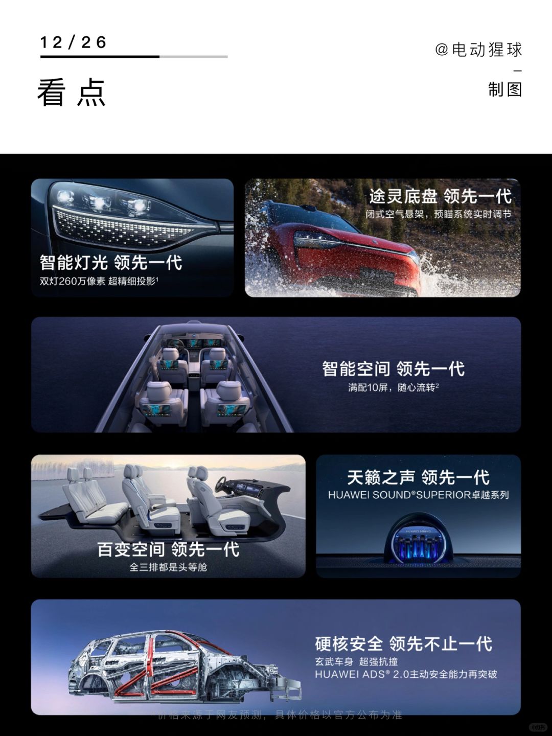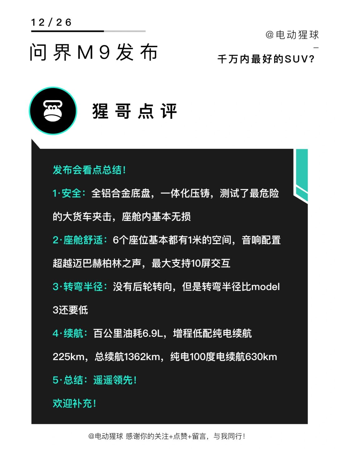 1·安全:全铝合金底盘,一体化压铸,车身80%铝合金,测试了最危险的大货车夹击,座舱基本无损