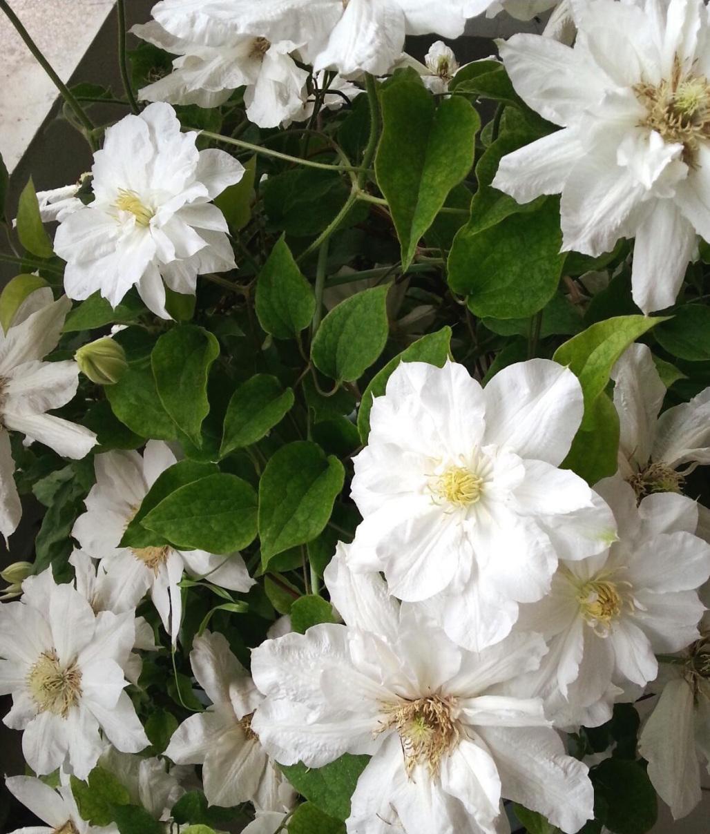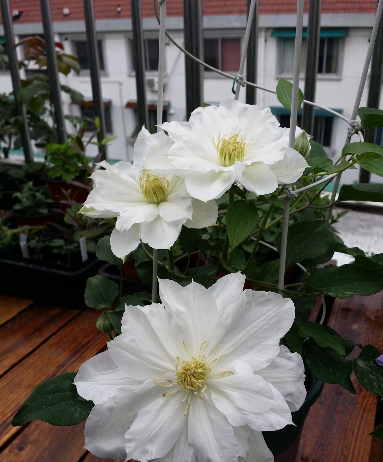 花朵带香味的铁线莲——伊萨哥(Isago),开花时会散发一种金银花+柠檬的混合香味,清香幽远,很好闻的香气,在几米以外都能闻到,而且花朵颜值也很高,花朵10~14cm,老枝开重瓣花,新枝开单瓣花,圆润饱满的,洁白无瑕的纯白色,干净清澈,无一丝杂色,非常漂亮的。每年四 份开始开花,夏天短暂休息, 底还会再开,能持续到 份,花量也十分丰富,很容易从下望上开满整树,养上一两年,就能长成一面两米高的花墙。习性强健,养护也不难,夏天度夏容易, 能耐-15度低温,我国大多数地方都能种植,室外盆栽和阳台盆栽都可以,虽然名气不如针皇、大河、水晶喷泉这些大,但是也很值得拥有哦。