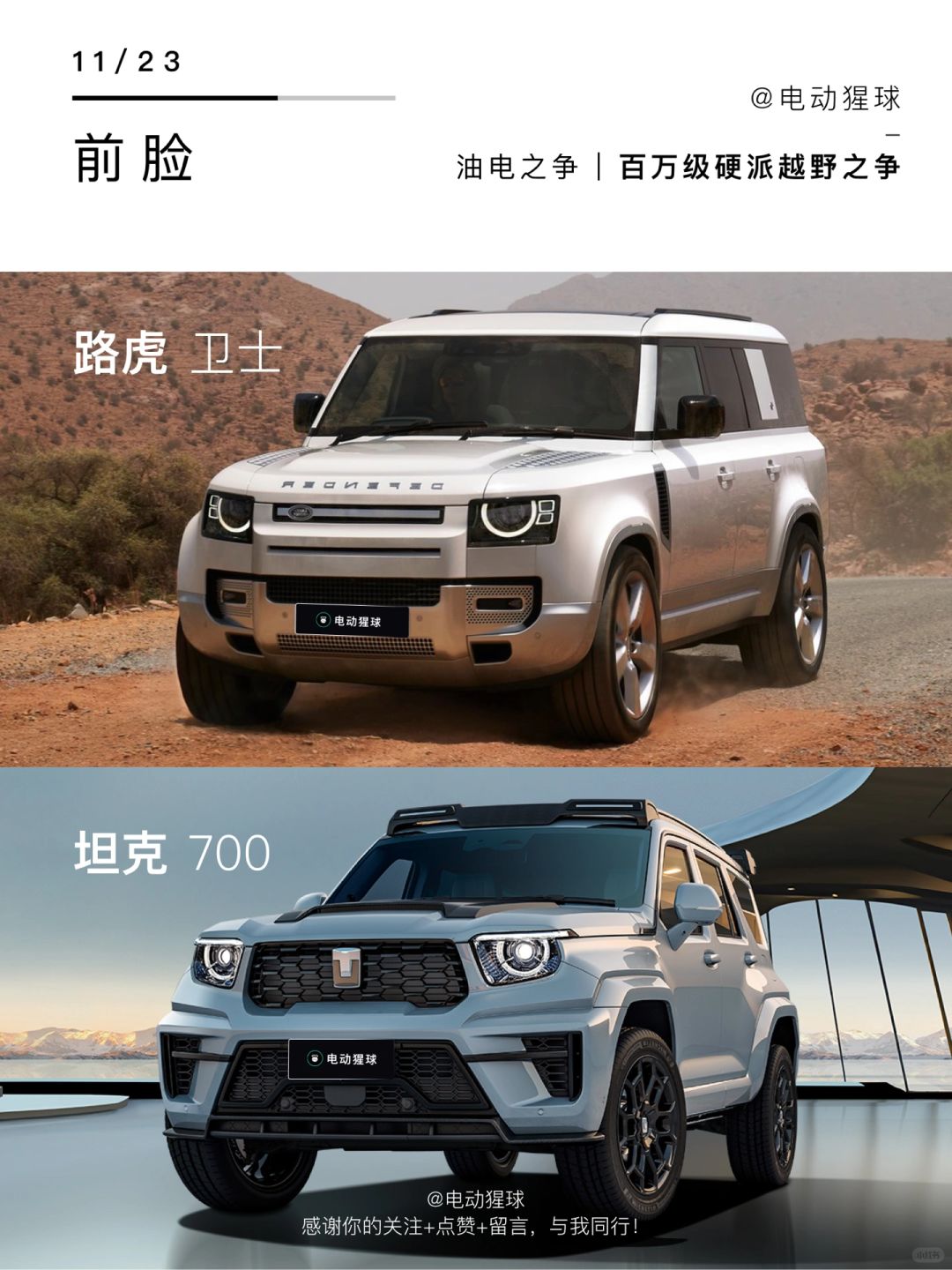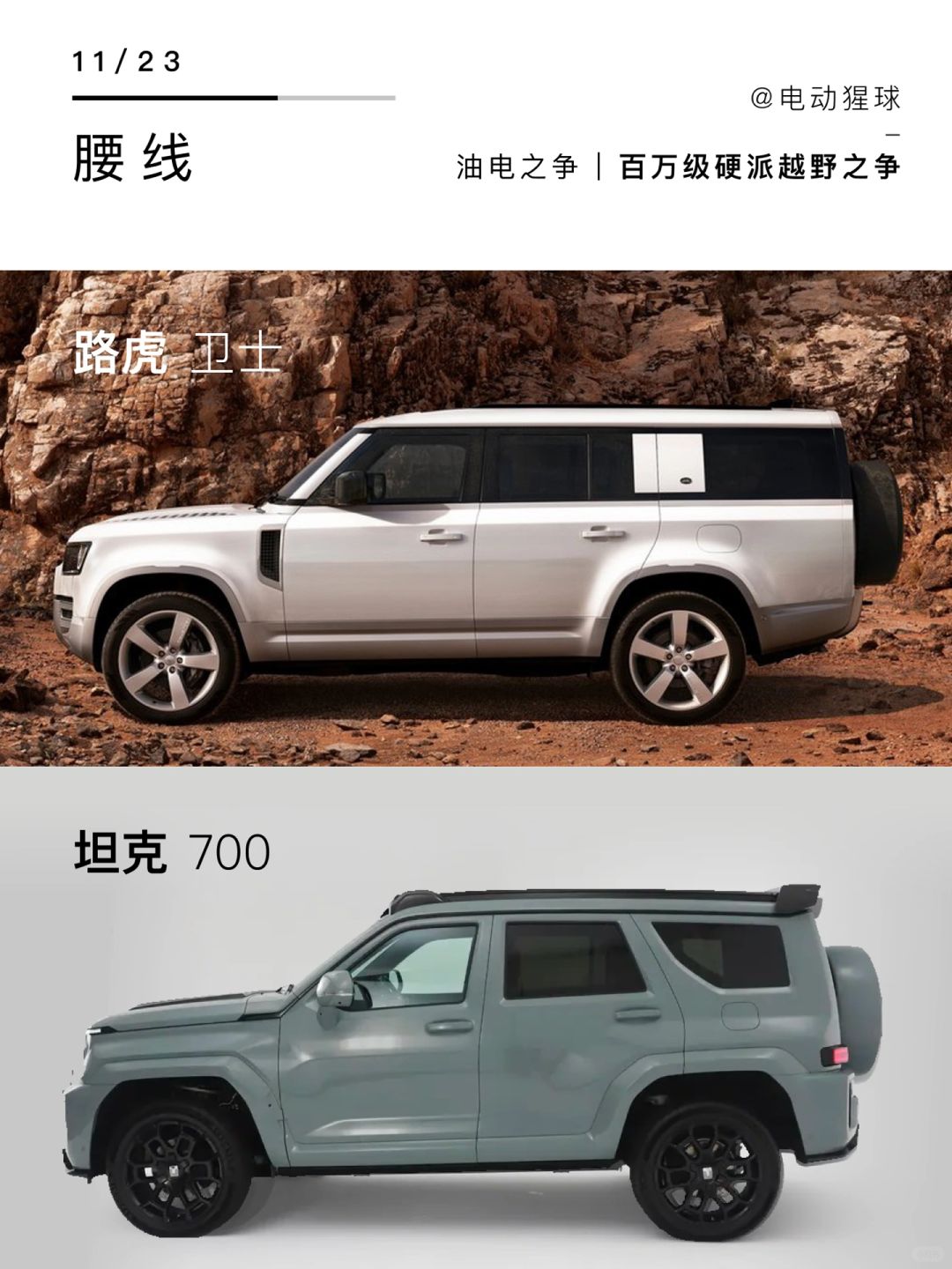 广州车展上坦克发布了旗舰越野坦克700,混动版价格直接70万起,对上硬派越野祖师爷路虎卫士,手握80个W,你怎么选?