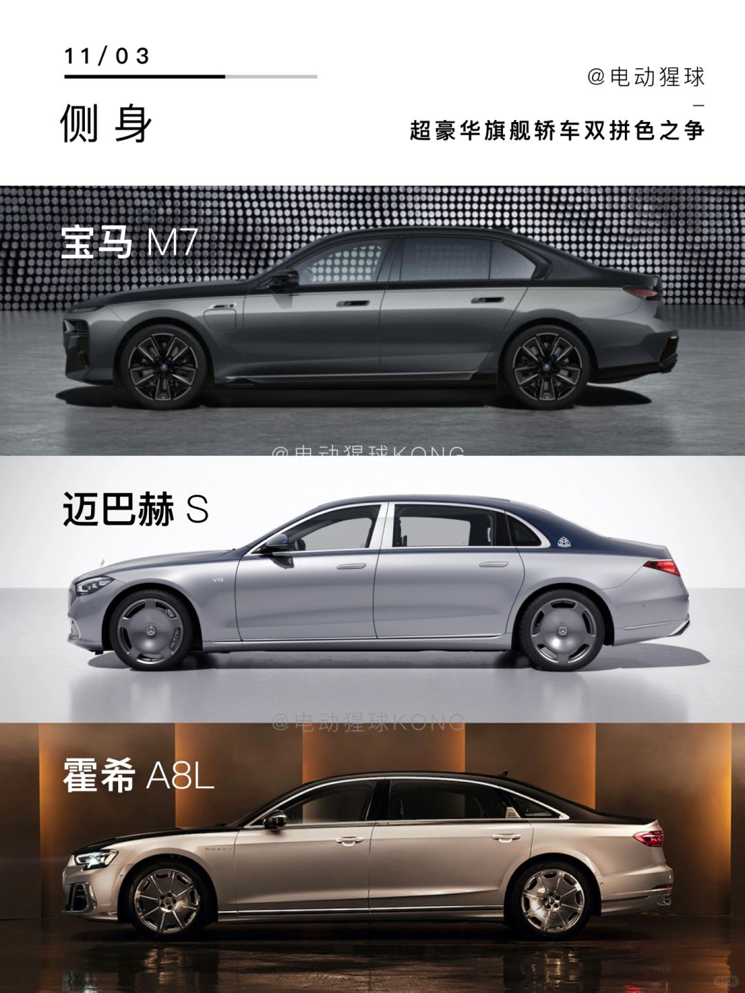 “双拼出厂,大佬登场”,奔驰迈巴赫的双拼成就了经典,如今竞争对手宝马M760和奥迪霍希A8L纷纷跟进双色配置,手握500个W,你会怎么选?