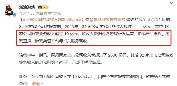 #34家公司游戏收入超3000亿元# 看见这个财报数据,就知道鹅一直占据所有行业的巨头,前两天猪鹅打架就想笑,这些数据还只包含了游戏部分。