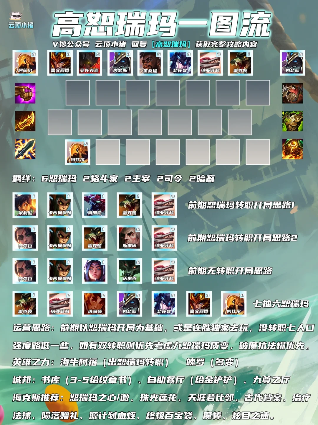 热补丁之后,毒瘤术士确实有所被制裁,但是海牛的时代还是没有过去,前几天分享了海牛的攻略,今天再补一下高恕瑞玛黄鸡多种变阵思路玩法。