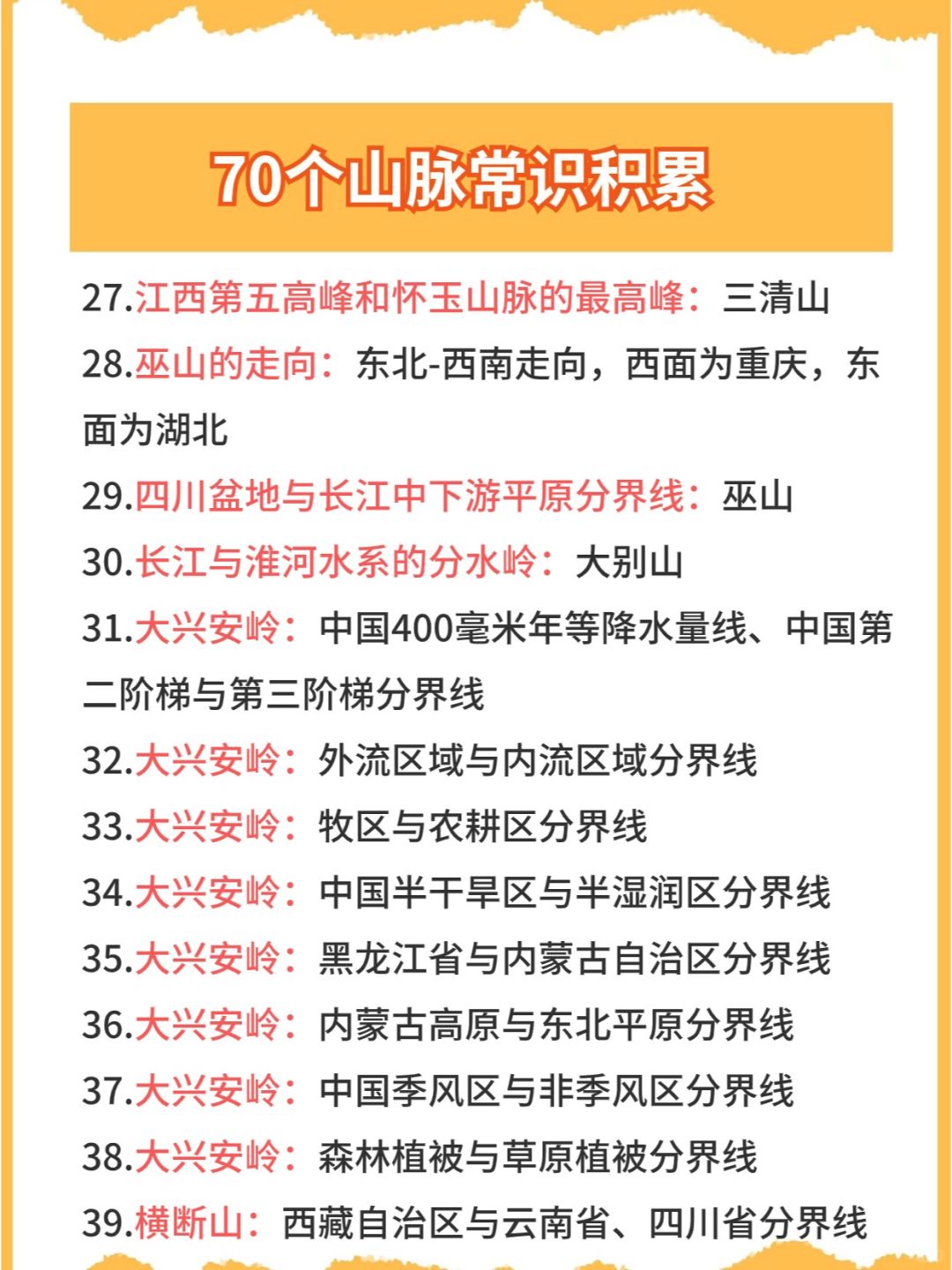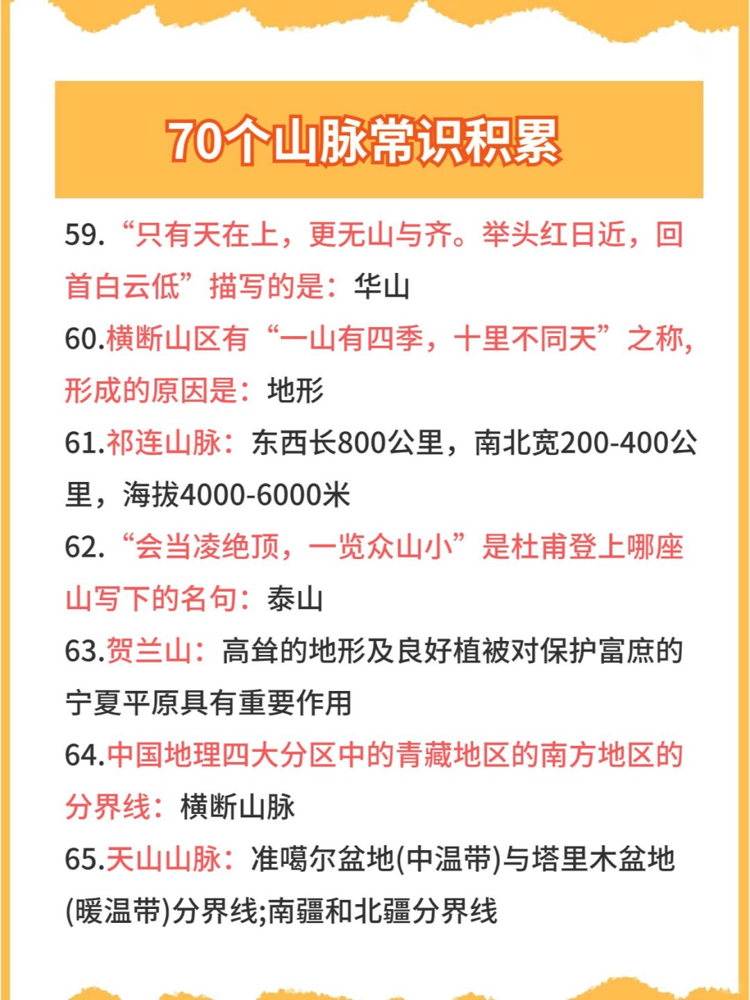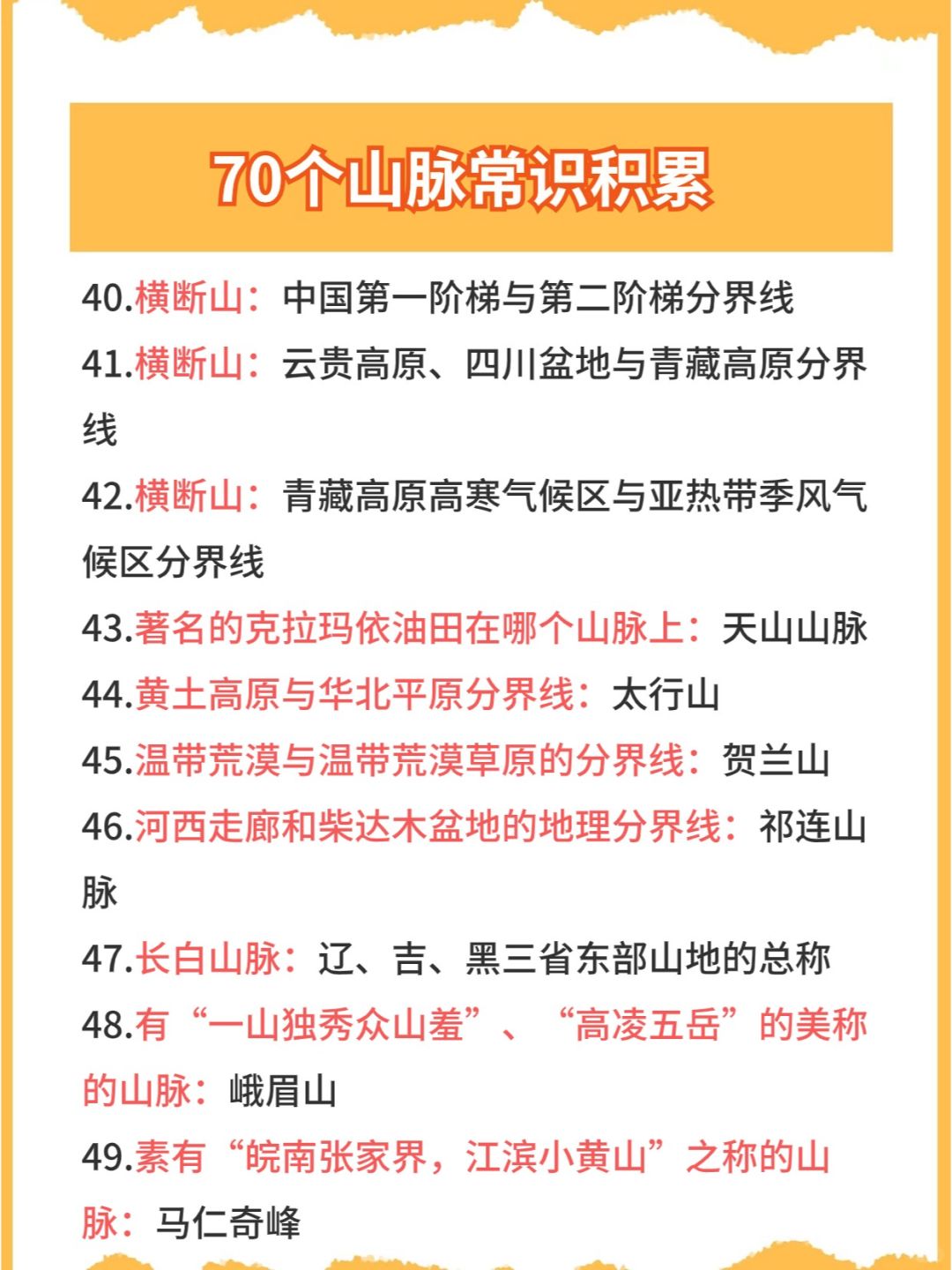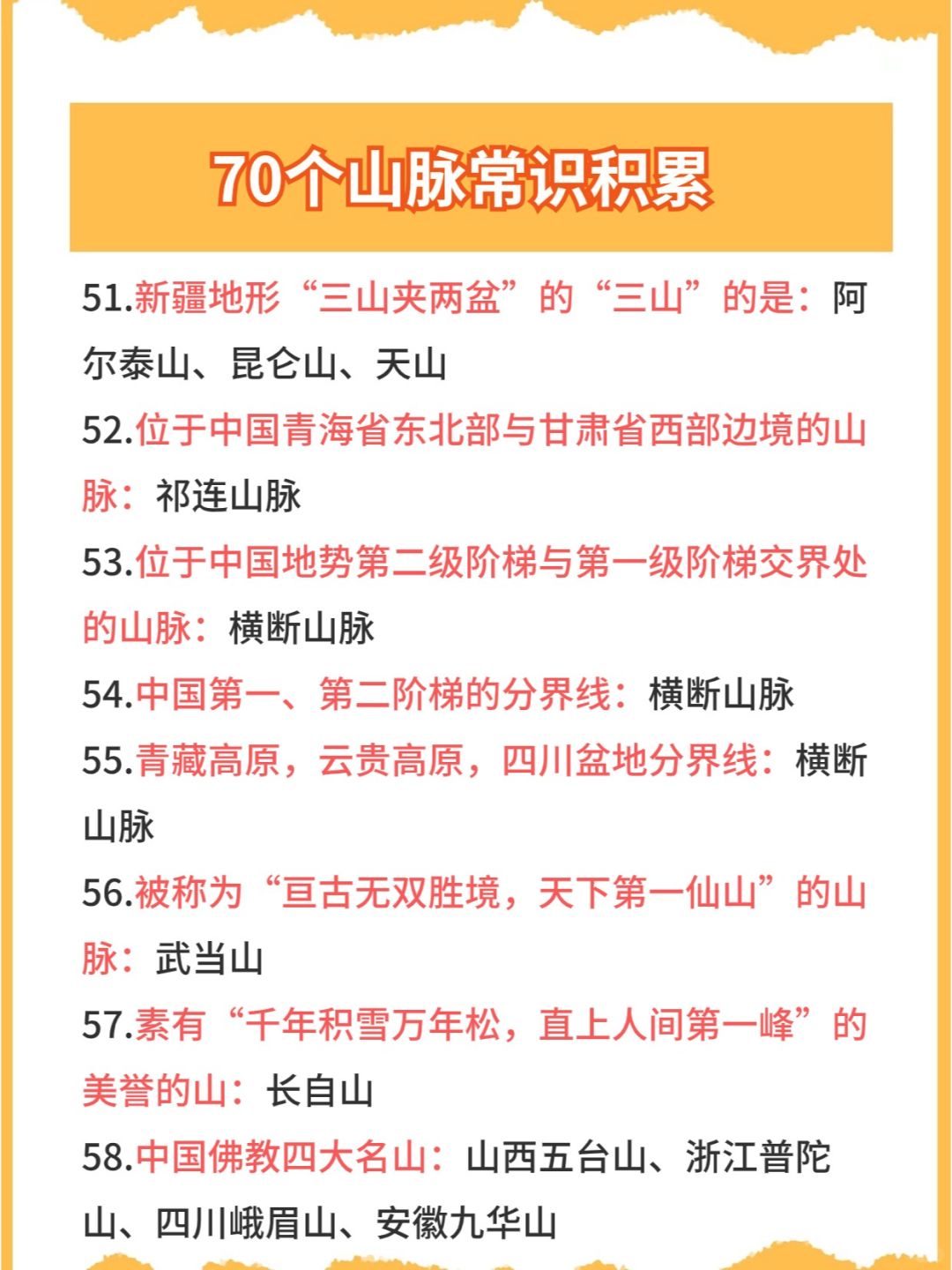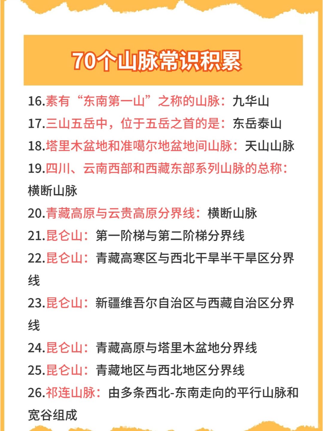 今日份公考/省考/事业编备考常识👉之地理山脉篇,常考知识点,码住快背~
