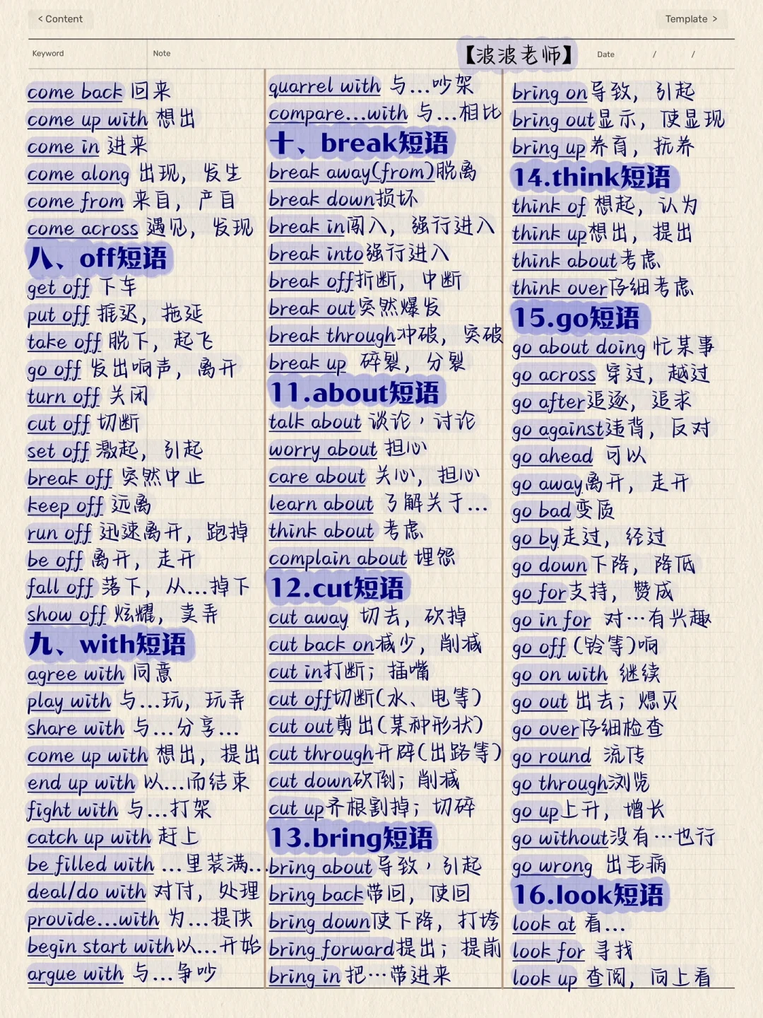 一定要背的完形结构短语!历年完形反复出现,背会闭眼选答案!适用:初中,高中,专升本