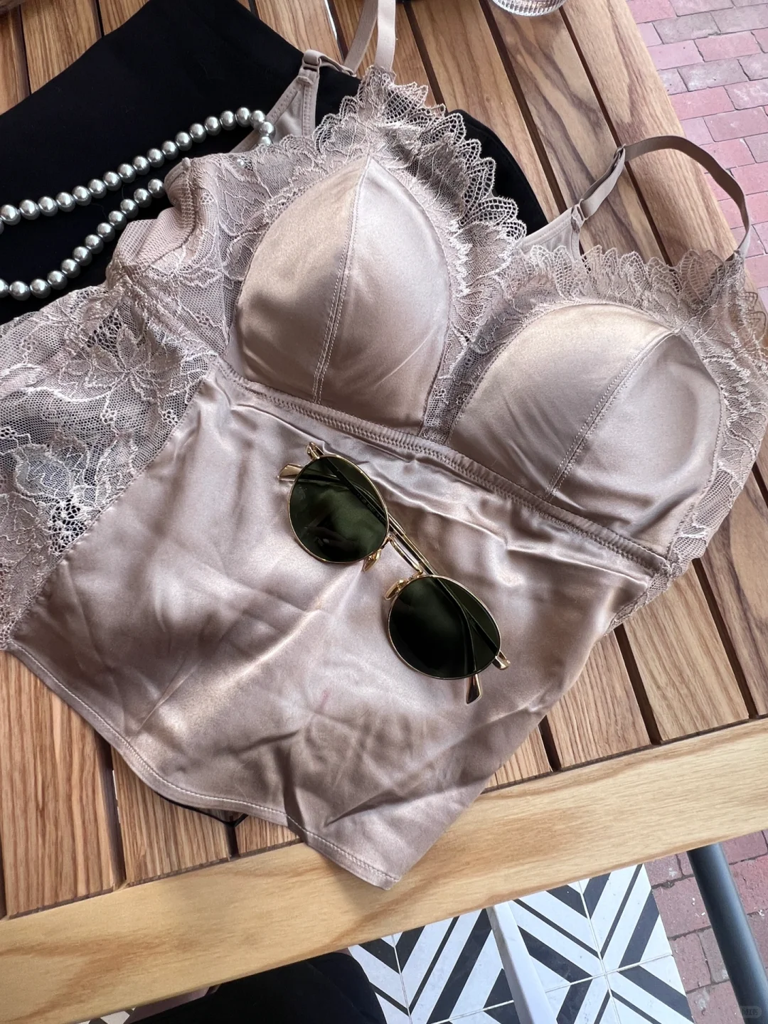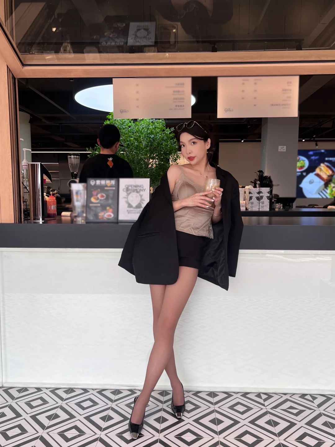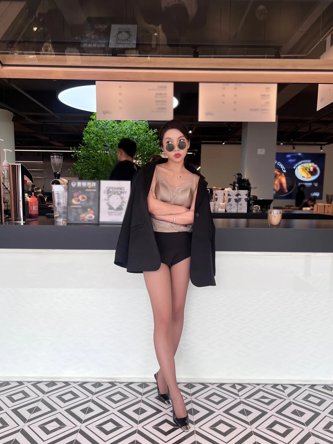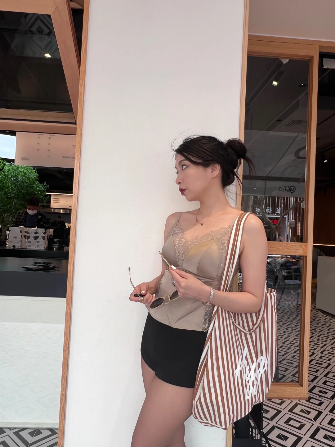 春夏季节我还是很喜欢这种带杯垫的蕾丝桑蚕丝吊带 (尊的桑蚕丝面料舒服😌) 不过我这个香槟色搭配黑西装贵气十足[偷笑R]