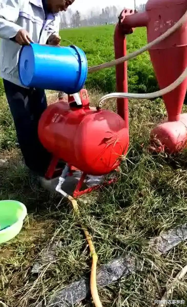 然后在浇水时,将母液缓缓倒入流动的水中,使其随水流入田间。