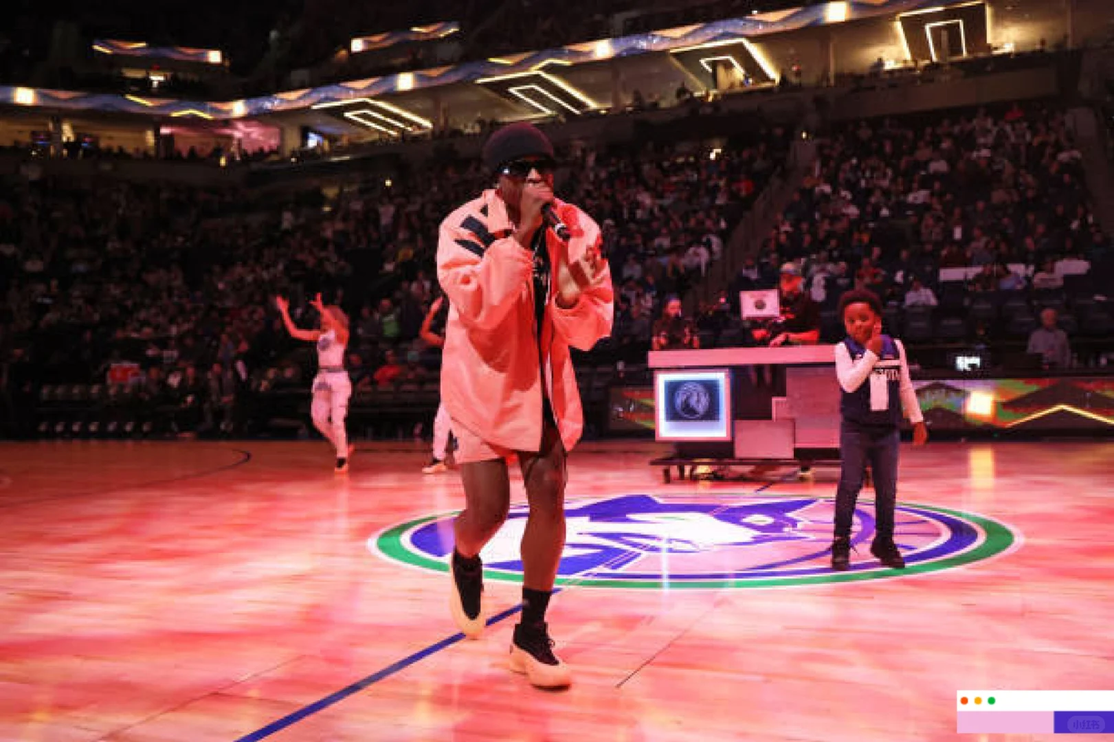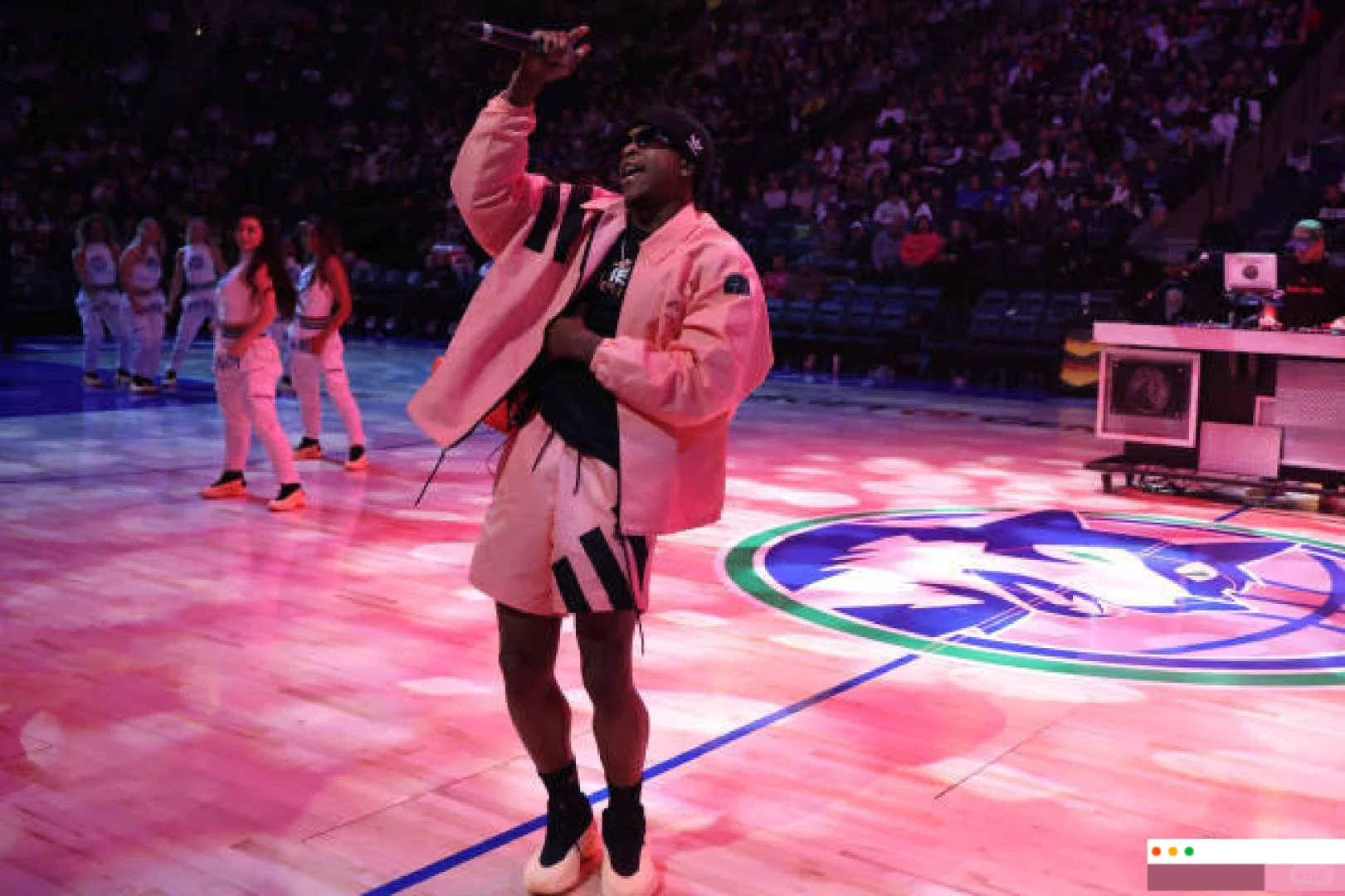 华子的哥哥,说唱歌手BDifferent今天来到森林狼队主场助阵表演,他也身穿属...
