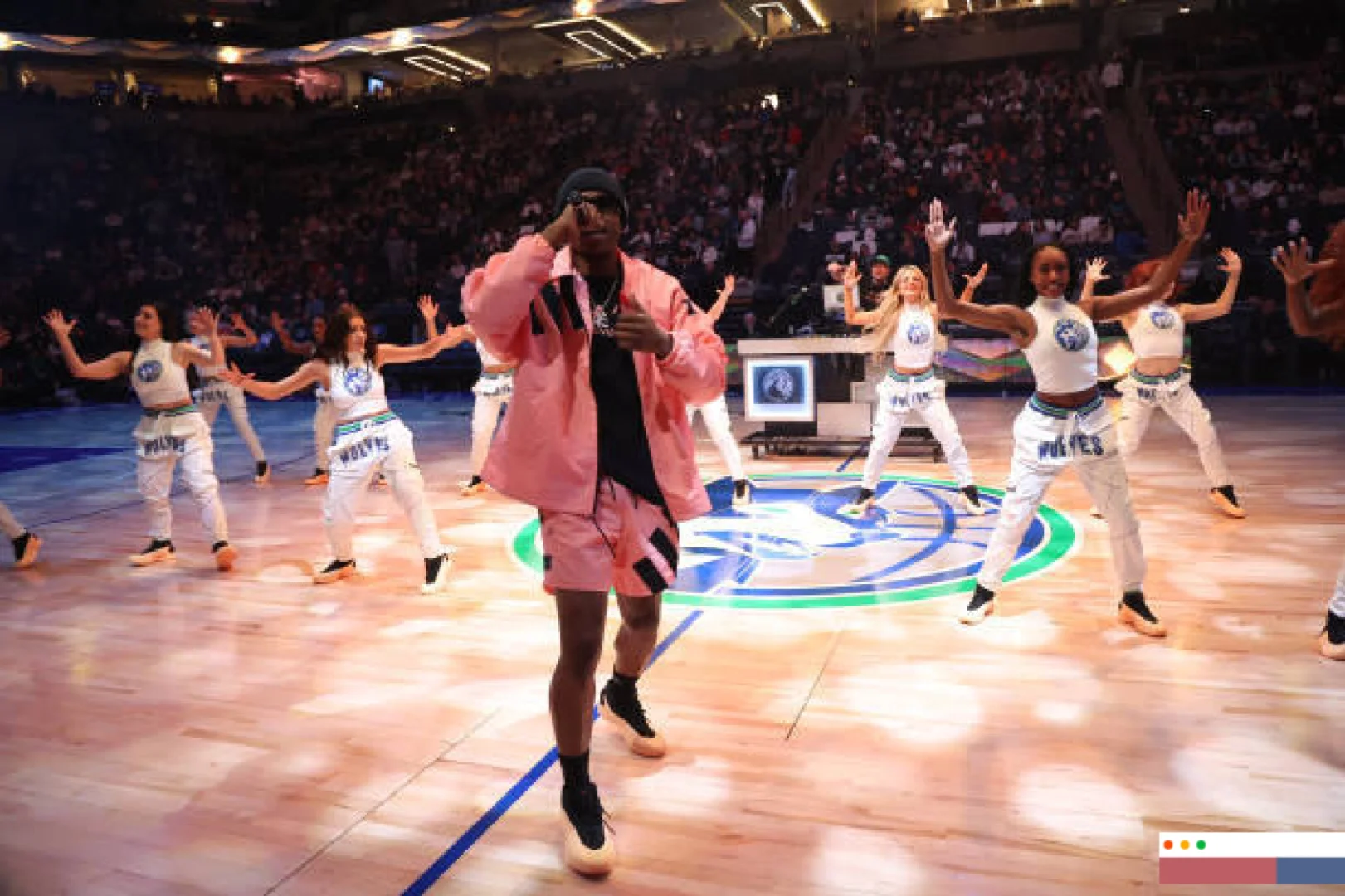 华子的哥哥,说唱歌手BDifferent今天来到森林狼队主场助阵表演,他也身穿属于自己的一身adidas AE1装备