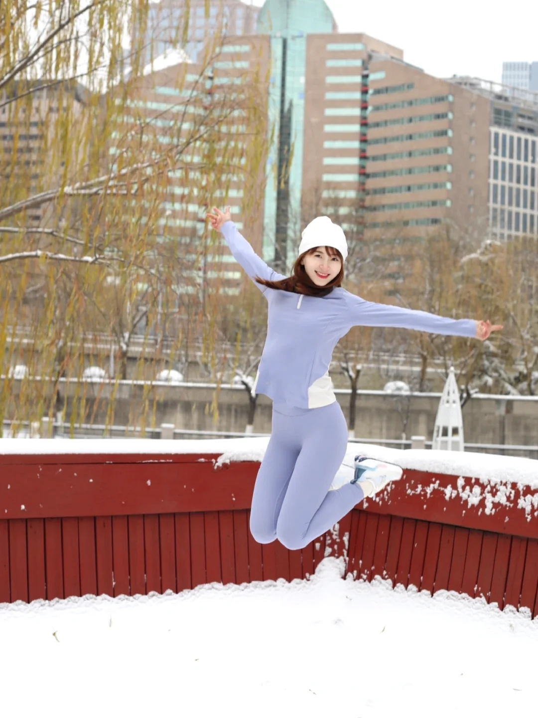 ❄️早上醒来,感觉一股清凉的寒意穿透窗帘,原来是外面下起了纷纷扬扬的雪。白色的雪花像精灵一样在空中跳舞,似乎在庆祝这个冬天的美好开场,每天早起运动已成为我的习惯,趁窗外还在雪花纷飞,换上瑜伽套装,穿上跑鞋,迈向雪地!冰雪里做伸展、跑步真的会更开心![太阳R]
