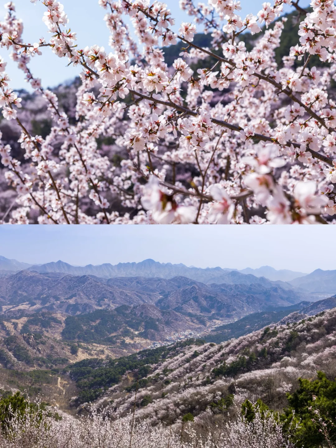 👉🏻这条路线赏花绝美🌸随着高度爬升可以俯瞰整个村子,高高低低的群山都开满了山桃花,真的很美‼️建议体力允许都来走这一条路线‼️