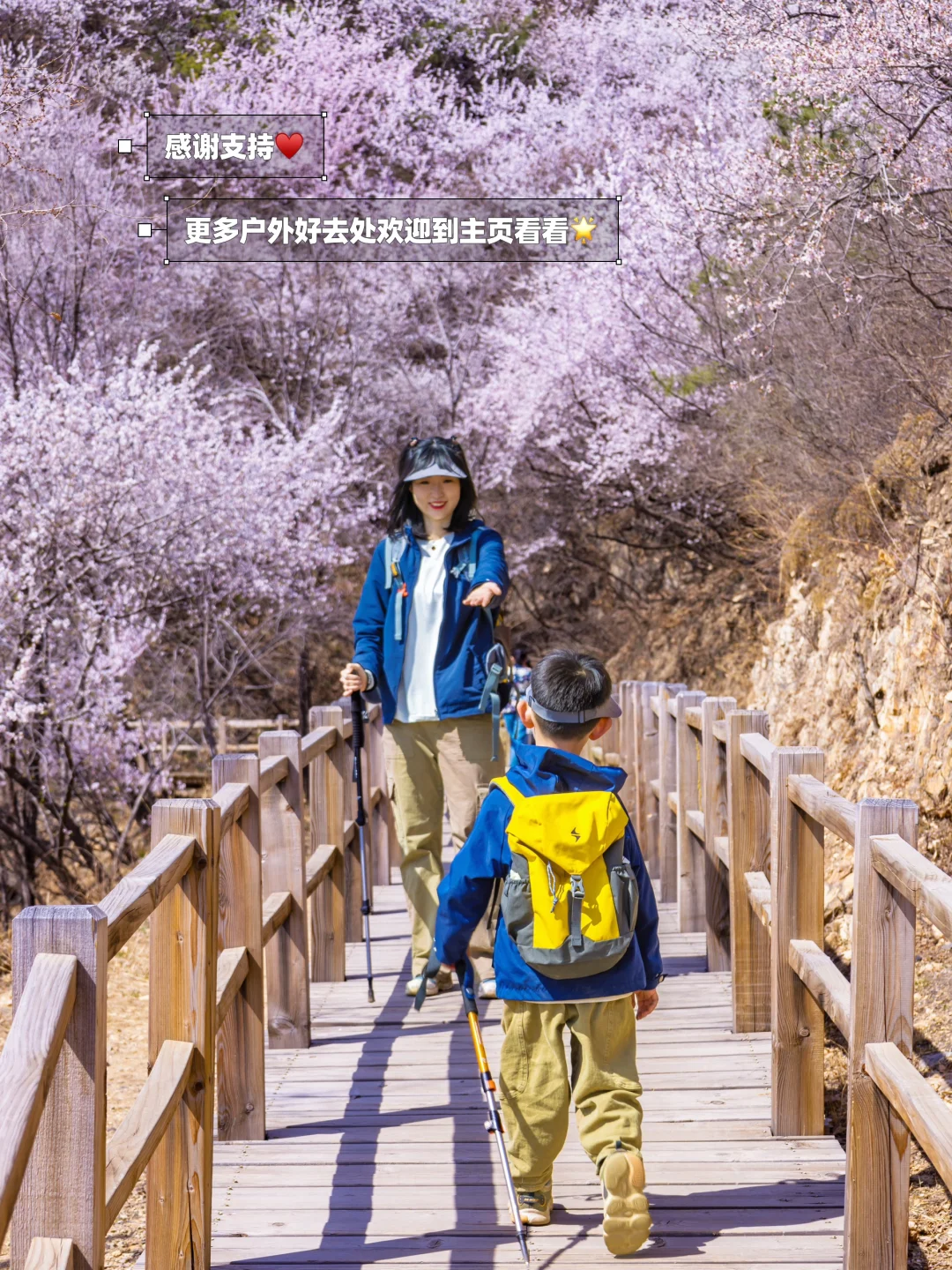👉🏻这条路线适合老幼全家,高度低,所以看花没有那么壮阔,但是也可以看到满山桃花