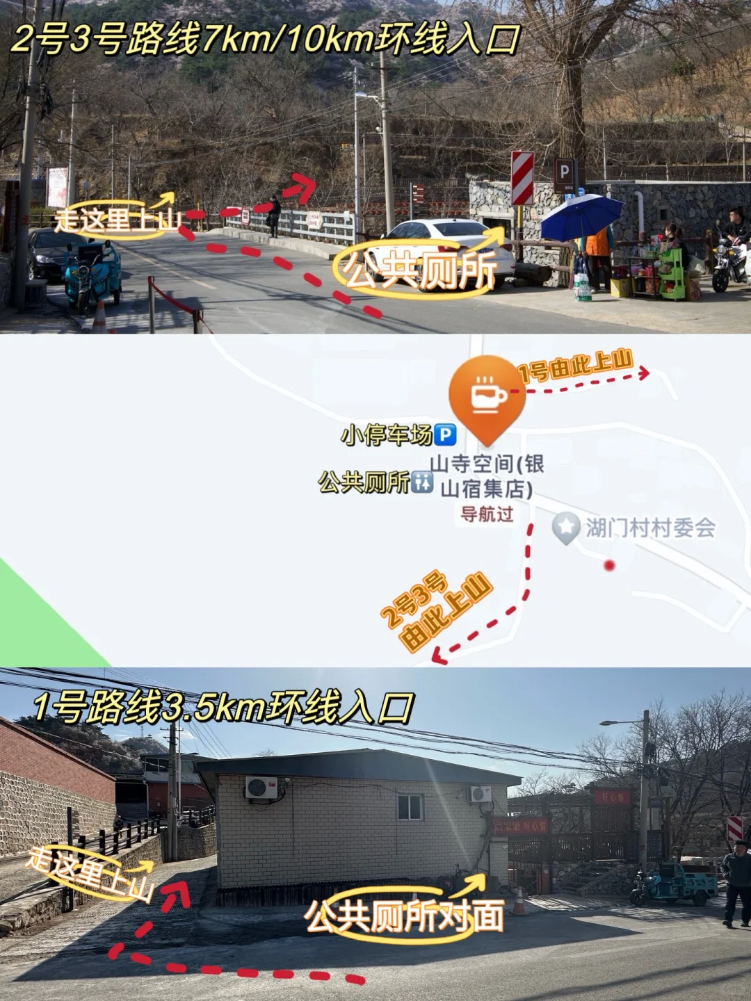 📍入口:到了导航点,看到公共厕所对面的写着农家乐好心情的小房子,旁边右转即可上山