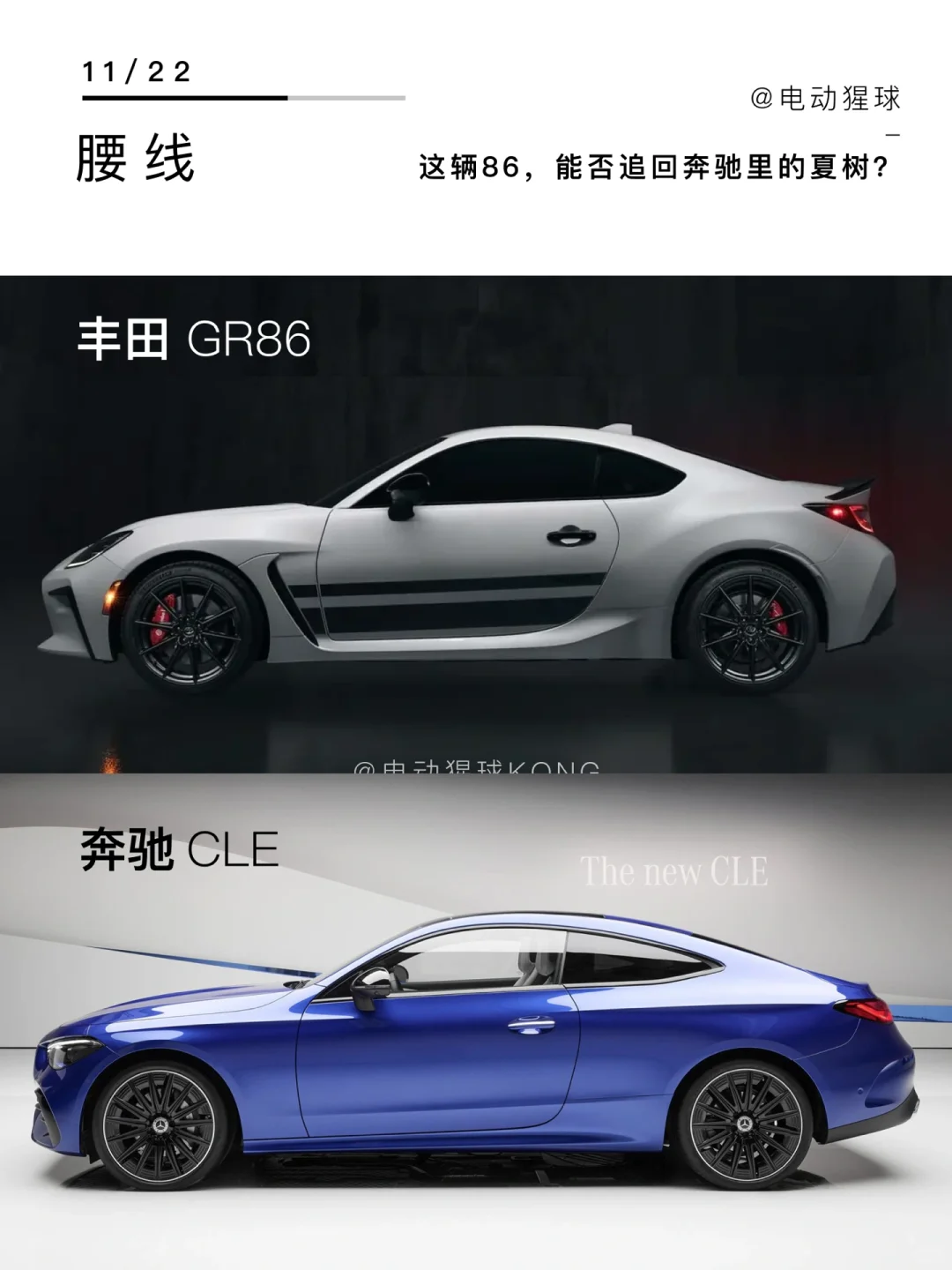 丰田发布了GR86特别版,黑白配色致敬1984年《头文字D》中出现的原型车,对上奔驰即将发布的新款轿跑CLE,这辆86能否追回坐上奔驰的夏树呢?