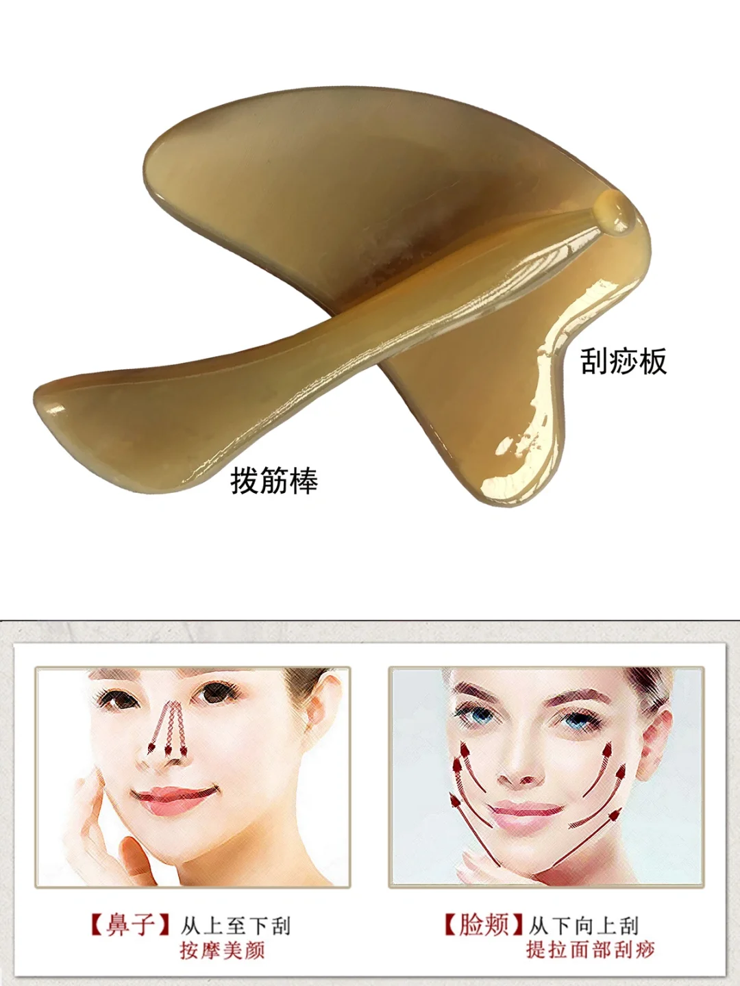 1、脸和脖子涂抹精油,用于保护肌肤,更加润滑,清洁刮痧板/拔筋棒;