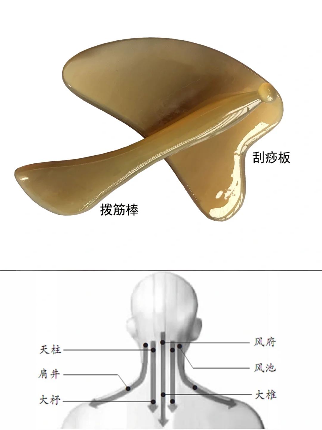 5、刮痧板外弧边,刮脖子两边,耳根往下方向