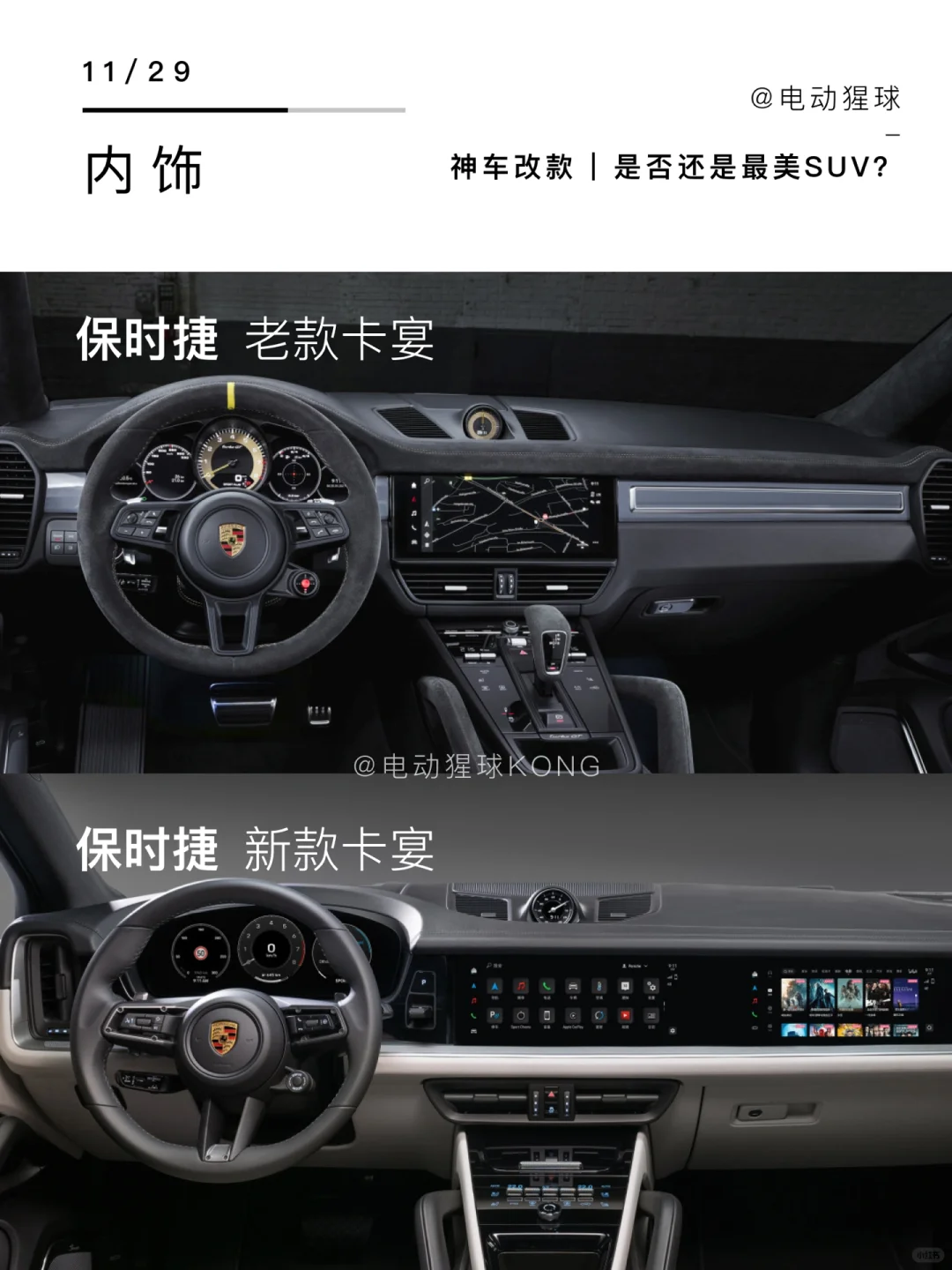 保时捷卡宴完成改款,尾部和内饰变化较大,不得不说国内新能源卷厉害,高贵的保时捷也把副驾屏加上了,手握150个W,你会提老款还是等新款?