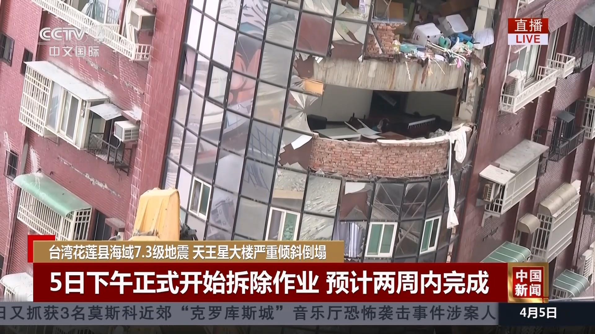 #台湾花莲县海域7.3级地震# 天王星大楼今天(5日)下午正式开始拆除作业,预计