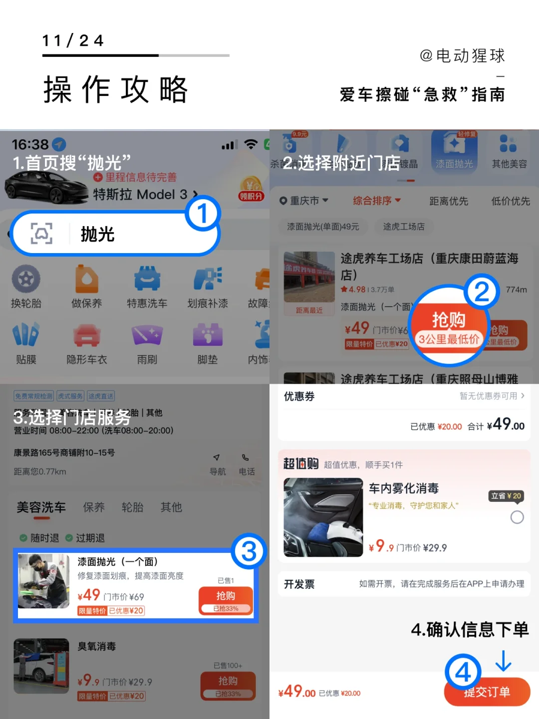 焕新版Model 3提车一段时间啦,用车过程中难免不小心遇到些擦碰,小小的划痕去售后补漆性价比太低🙅🏻,漆面抛光就可以“急救”🆘回来!