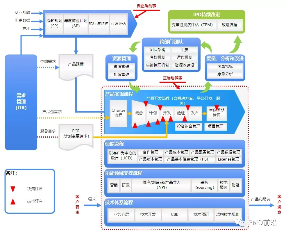 企业的流程管理体系通常包括“纵”“横”两个方向的业务流横向为价值创造流,包括IPD、LTC、ITR三大主流程。 聚焦为客户创造价值,达成客户满意纵向为战略与运营流,支撑公司战略方向制定及战略的落实,它把公司各个部门的运营管理集成起来,实际上就是组织的绩效管理流程。