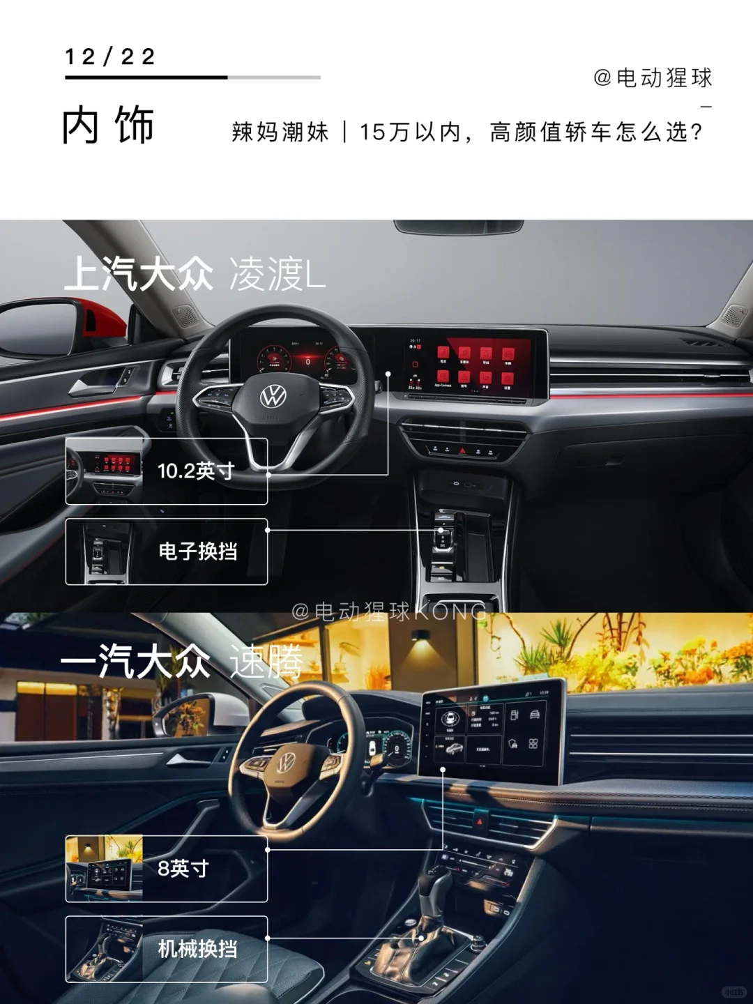 不谈配置对比都是耍流氓,本篇对比的是凌渡L潮辣版和速腾超越版,15万内能够落地,基本同价