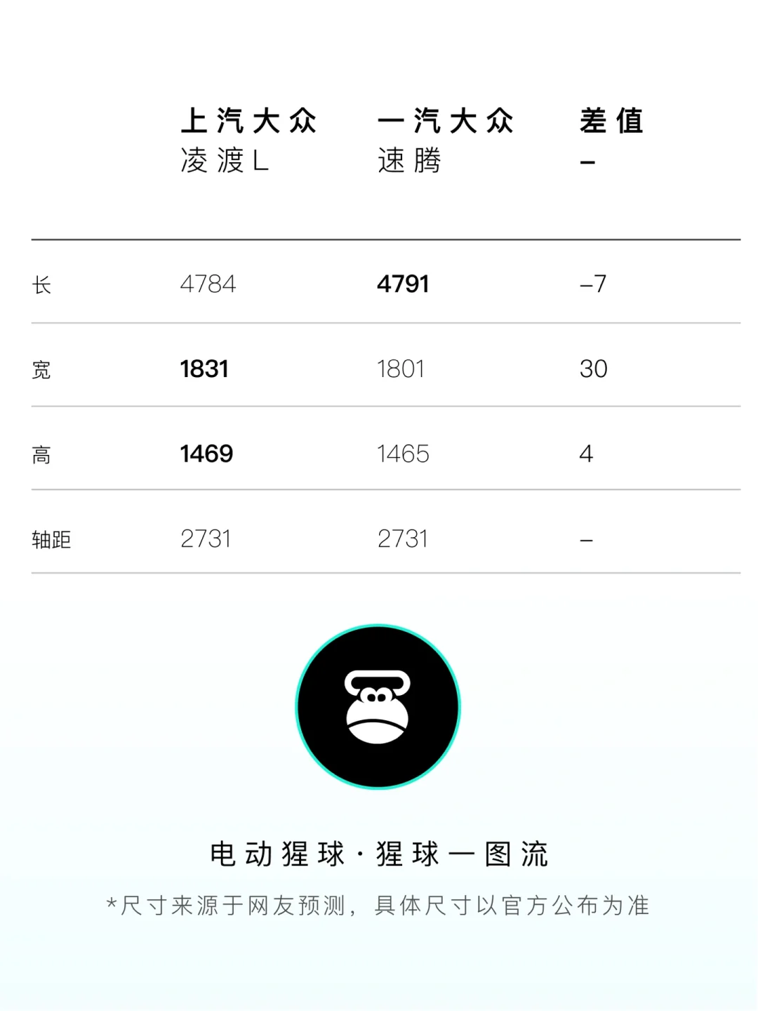 两款车为兄弟车型,尺寸差不多,相对来说凌渡L的车宽和头部空间更优