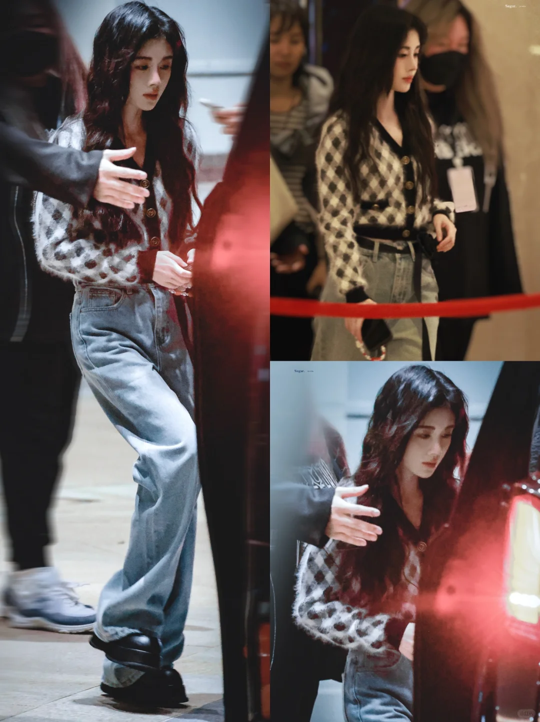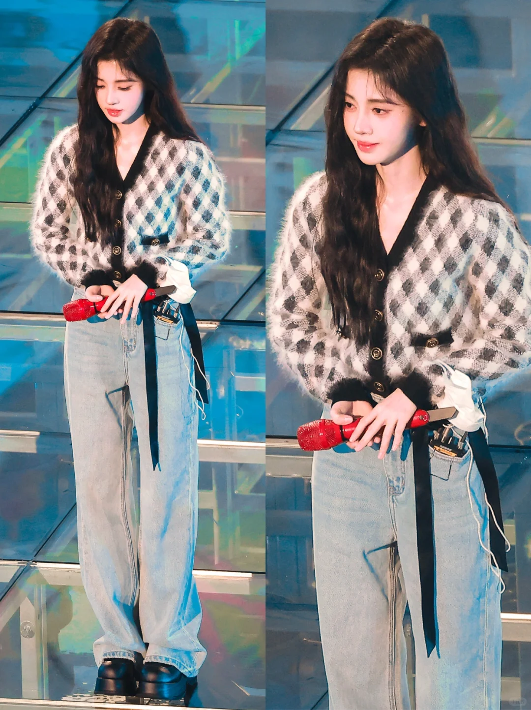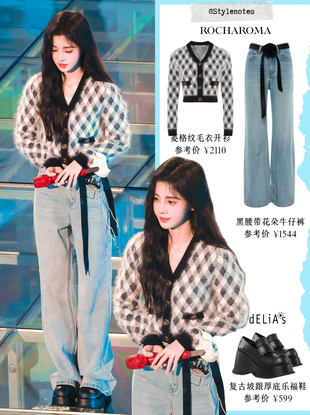 鞠婧祎彩排图来啦 卫衣搭配的是宽松的工装牛仔裤 连飘舞的头发丝都很美很飒🆒 黑白格纹针织与牛仔裤间的花朵腰带很契合 这一组穿搭恬静温柔~ 小鞠就应该在舞台上发光呀✨ 恋爱告急和青花瓷都是我很喜欢的歌 期待舞台! ▪️图源-鞠婧祎工作室、Sugar·Kiku鞠