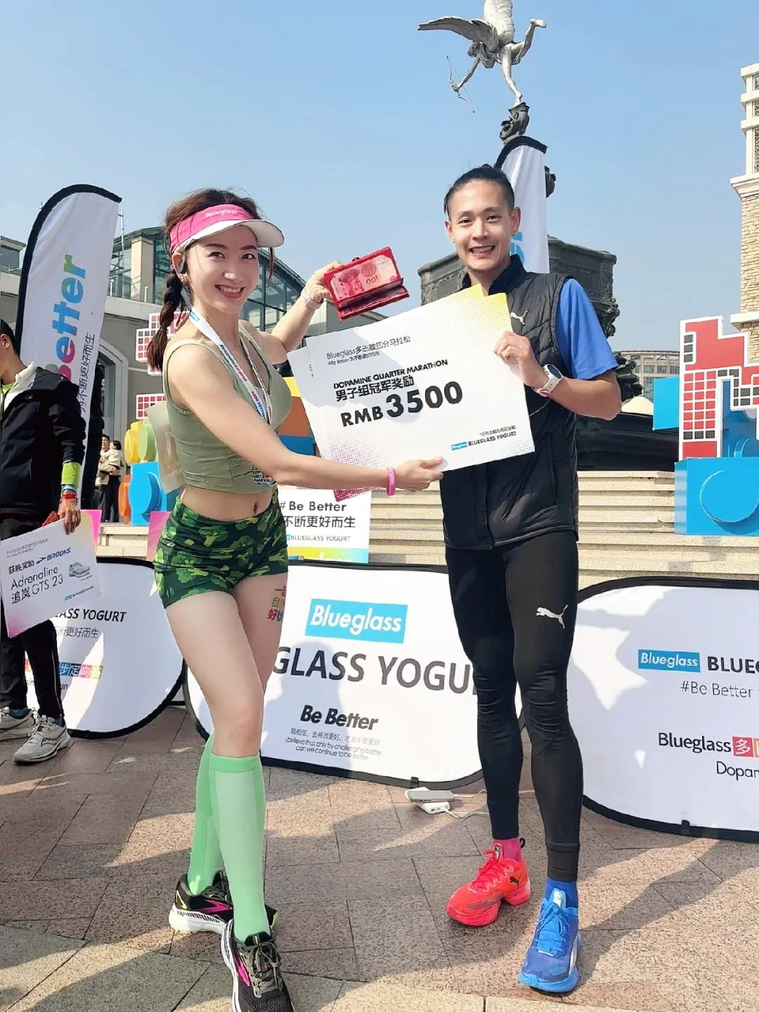 今天参加了Blueglass多巴胺四分马拉松,跑了11.13公里,用时59分钟,男子第一38分钟完赛,我在想都是人,区别这么大?他说无论吹风下雨下雪、下刀子,每天都要去外面训练!台上一分钟,台下十年功,敬佩!💪