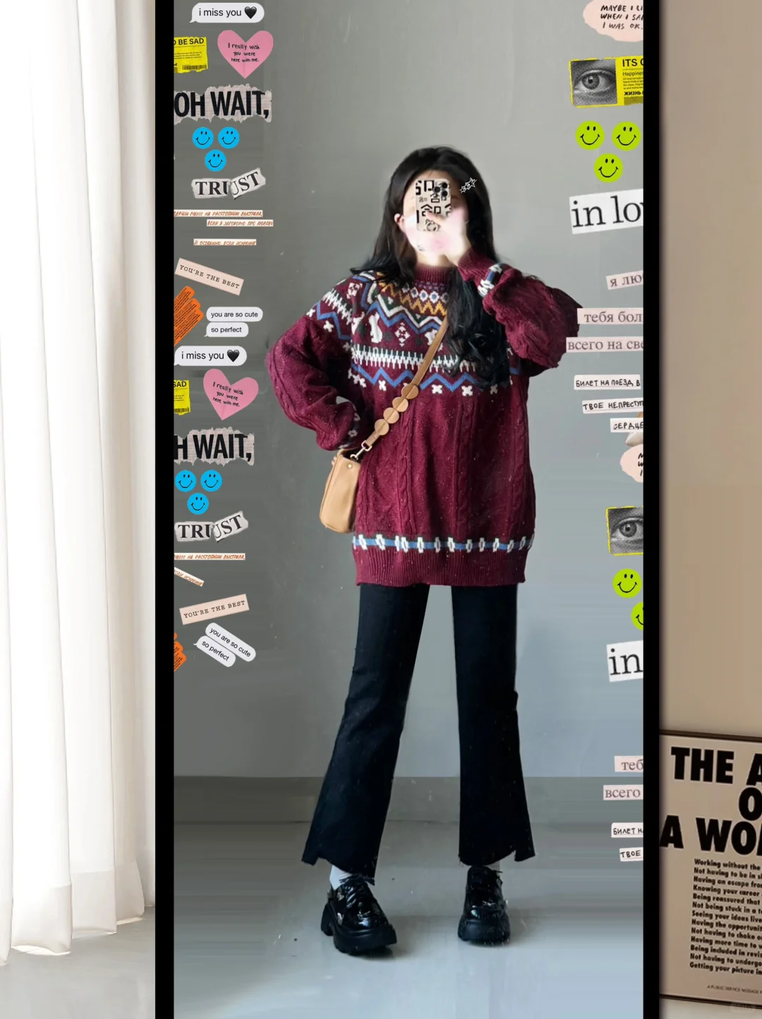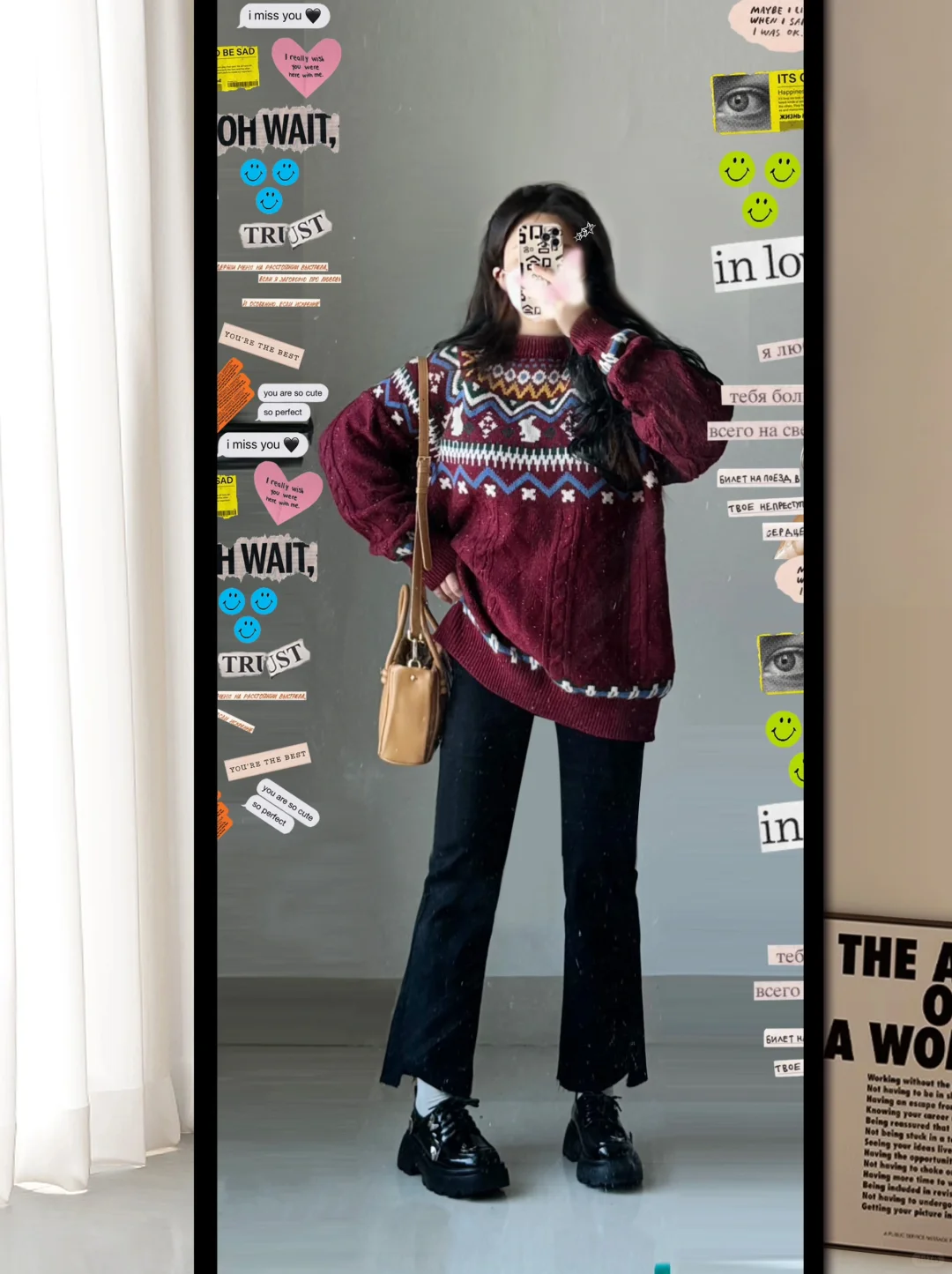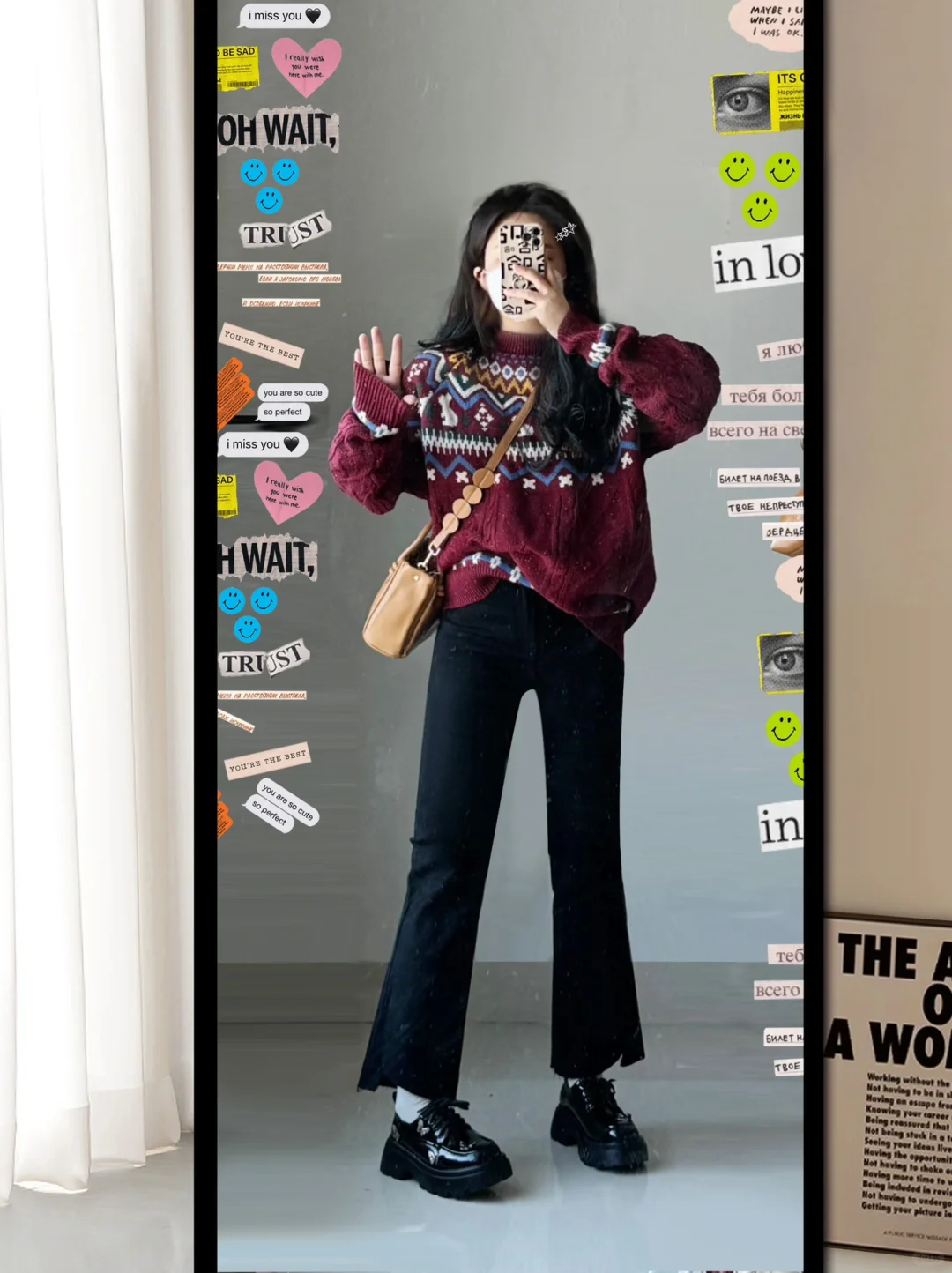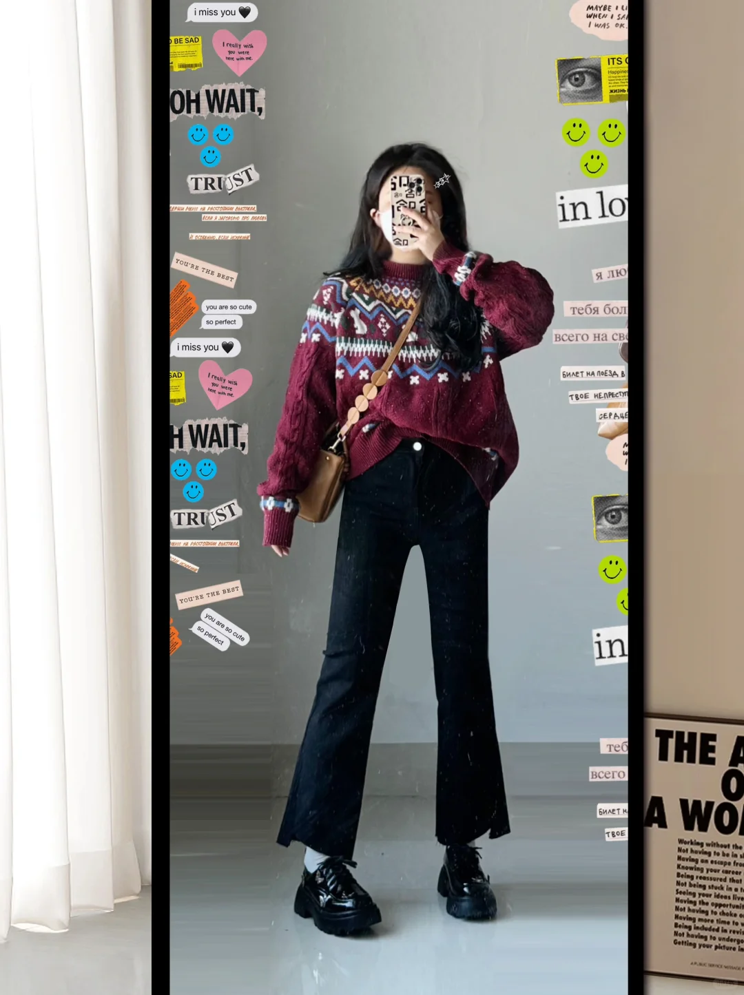 小个子穿搭 今天穿什么香 笔记灵感 红色毛衣 黑色牛仔裤