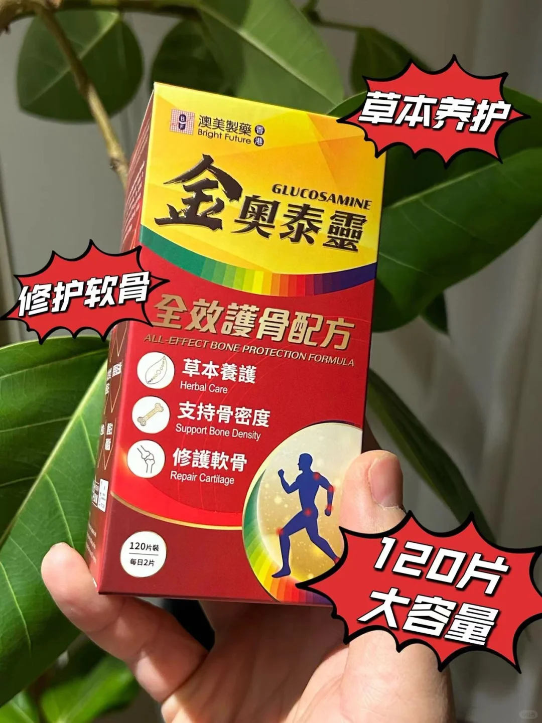 当然,内服氨糖也是可以对我们的关节有很好的保护和修护作用,金奥泰灵是香港澳美公司生产的,全效护骨配方包含9大成分因子,可以帮助修复软骨,支持骨密度,补充骨胶原。红瓶金奥泰灵,120片大容量,每天2片,坚持使用,可以帮助我们大大提升关节灵活程度以及舒适度,提升我们的运动表现!