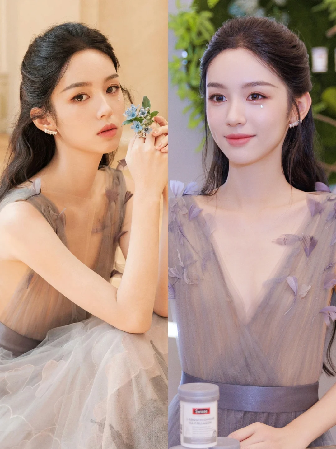周也前几天出席活动真是美若天仙~ 仙气飘飘的长礼服 在人群中气质好亮眼! 人鱼泪钻妆太精致啦! 脸颊点缀水滴钻石 眼神清澈闪亮 有一种淡然懵懂的小鹿感🦌 温柔而自然 👀在不同角度下blingbling的 灵动又有呼吸感 视频里随意截图都好看 不得不说周也这张脸就是天生的种草机🌱 怎么看都很贵气 看也子的新剧《为有暗香来》 也是一种视觉享受啊~