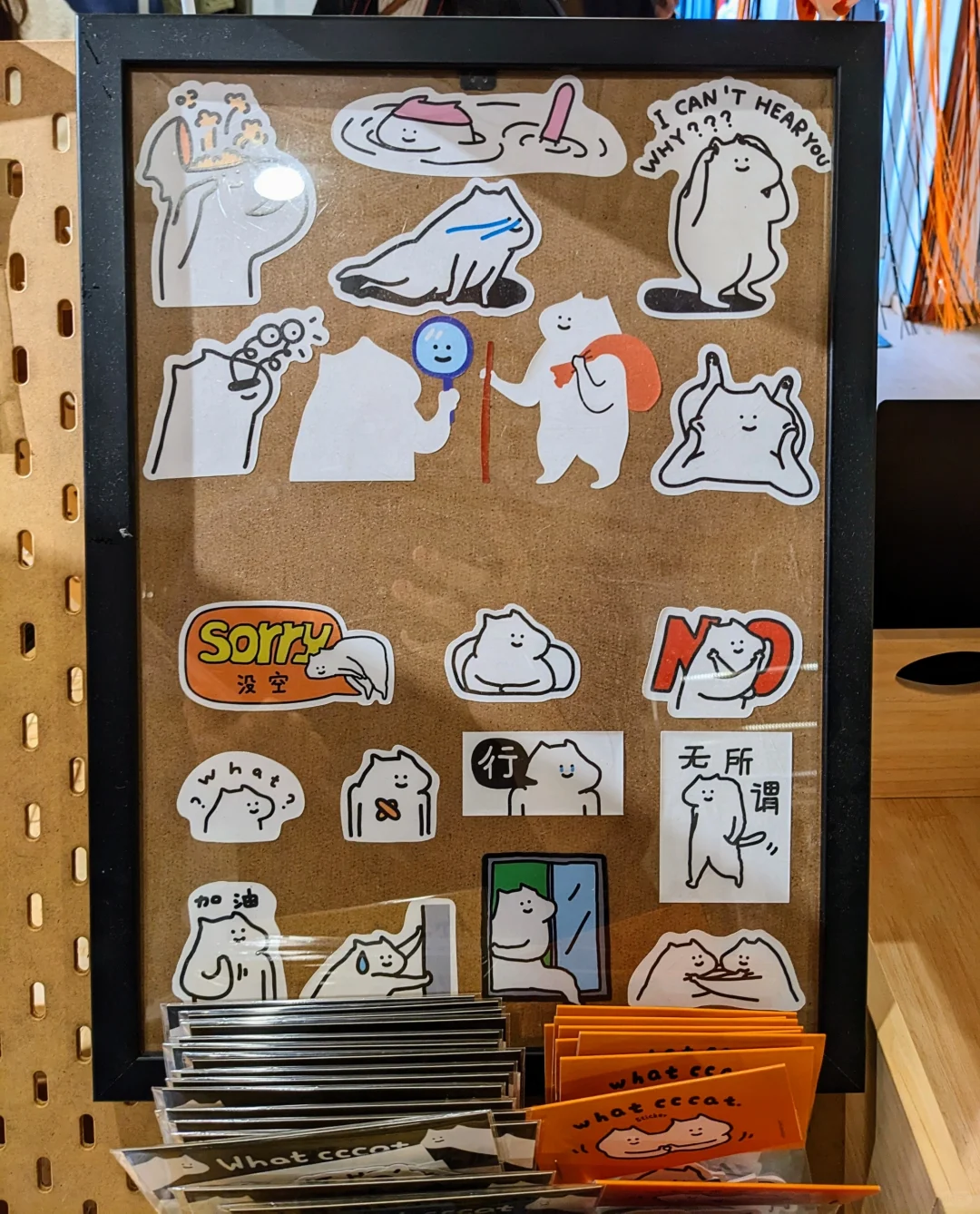太可爱了,来了就是花钱啊啊啊啊啊啊! 作为什么猫的忠实粉丝,我能叫出每张贴纸的名字哈哈哈。 真的是超爱什么猫,本来想上个月就来,结果各种耽误,今天终于有幸打卡,看到自己平时每天使用的表情包被做成了更可爱的文创,能不买吗?! 然后一夜返贫哈哈哈哈 希望什么猫能做的越来越好!