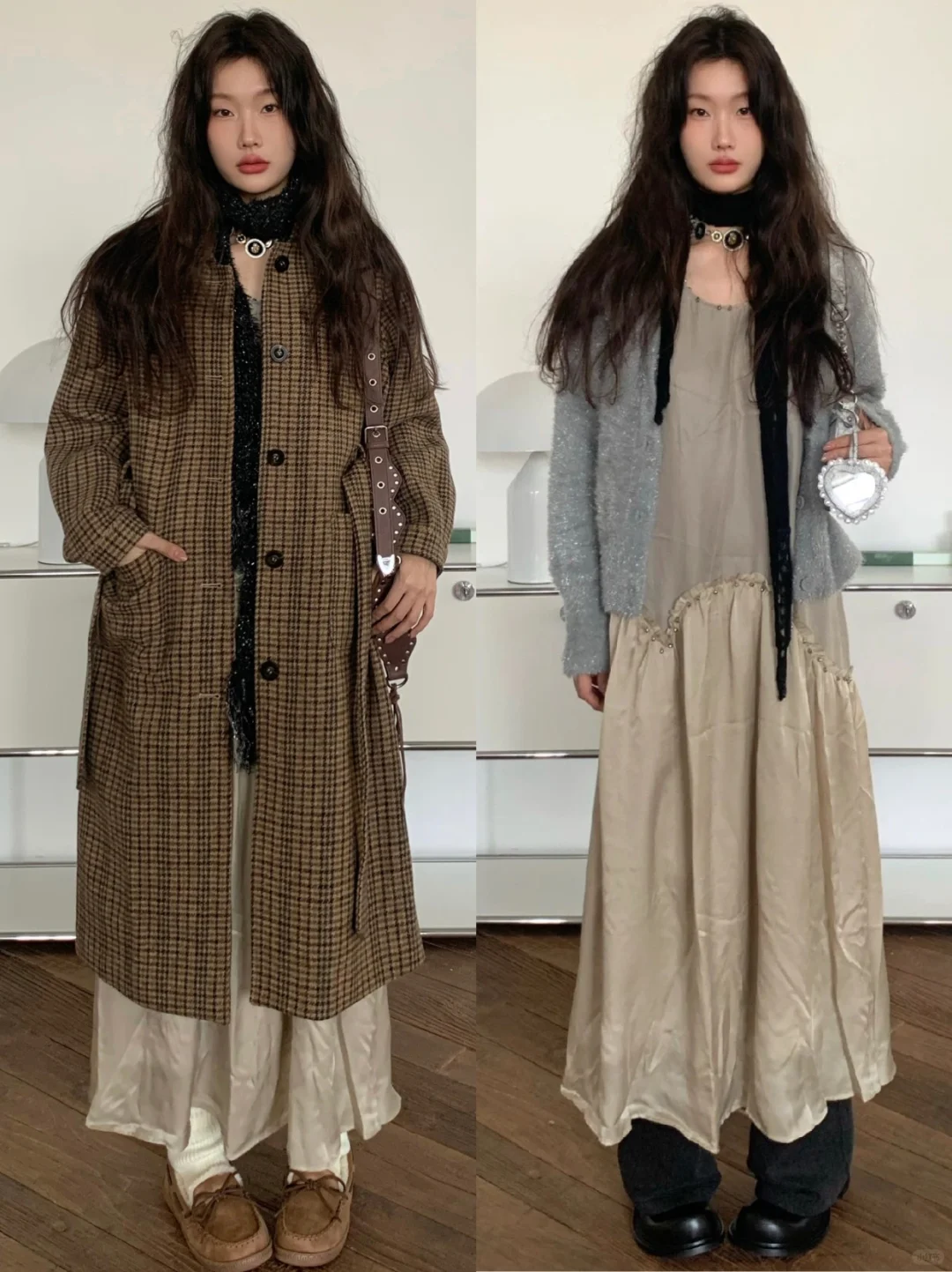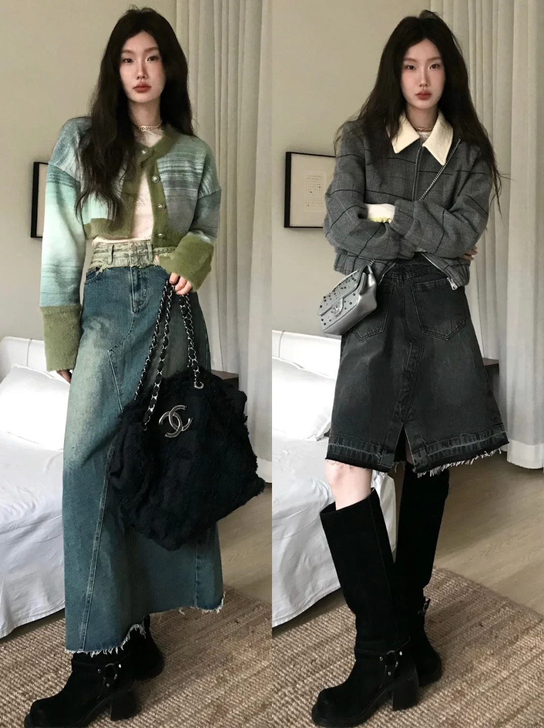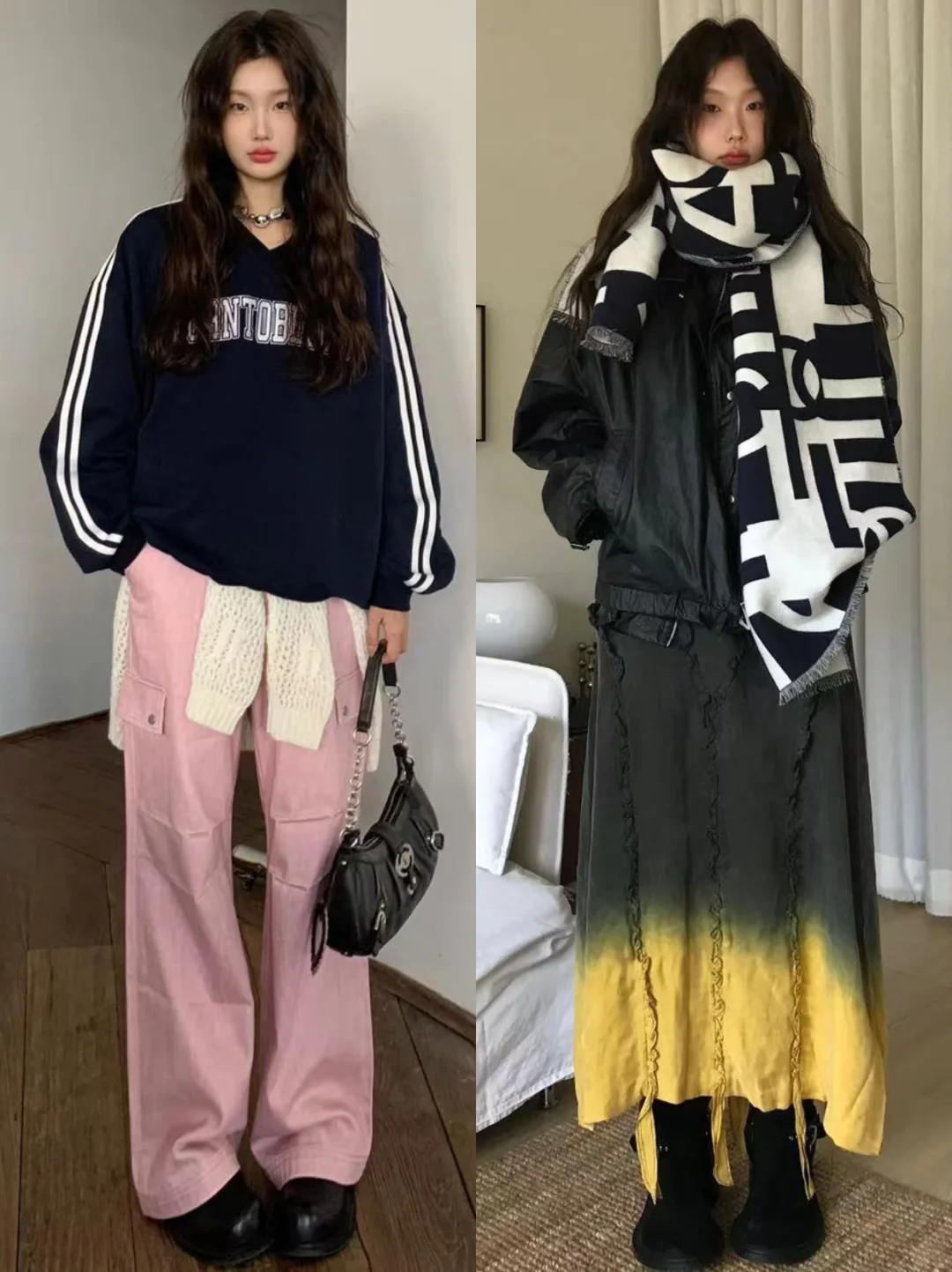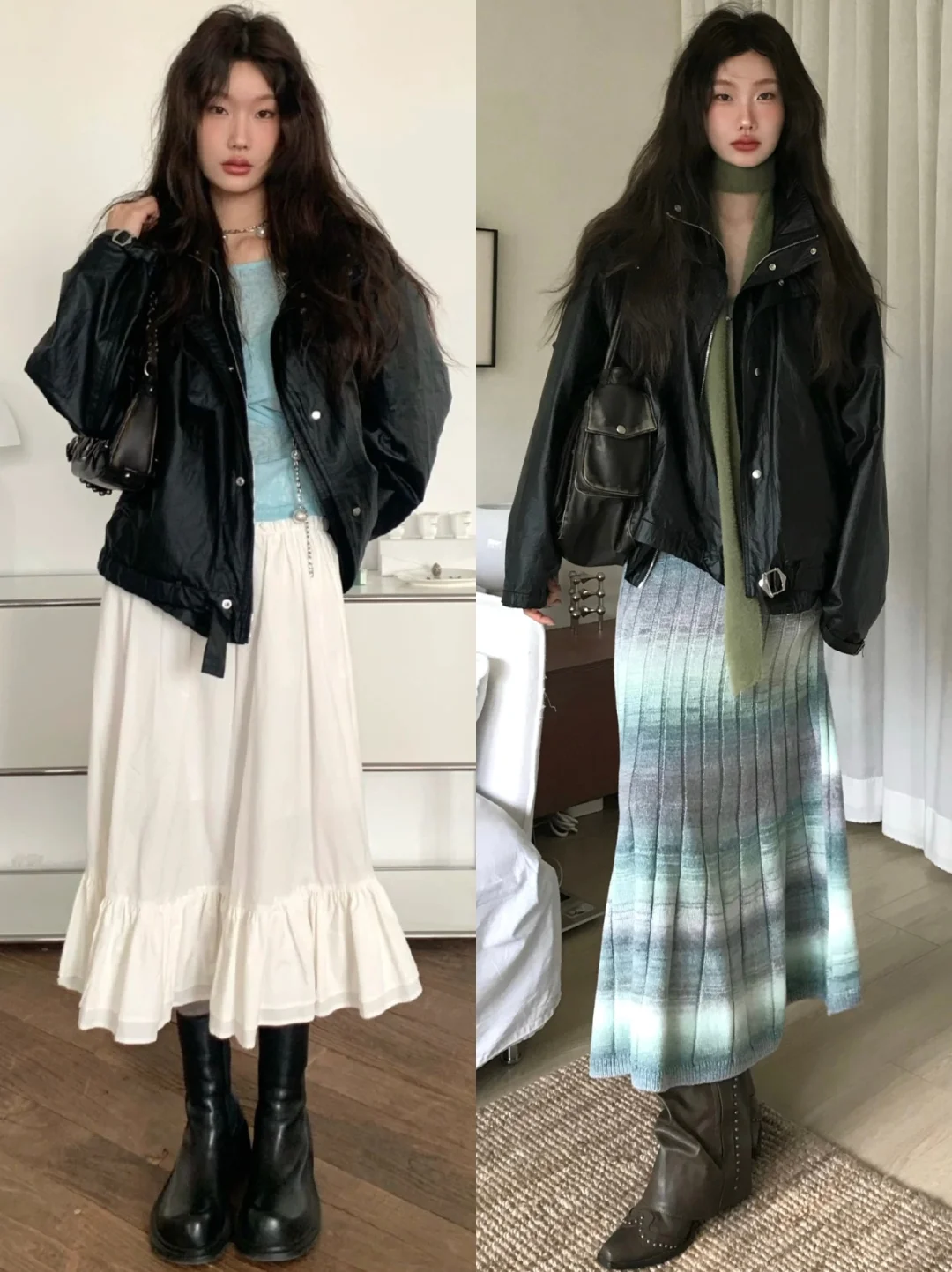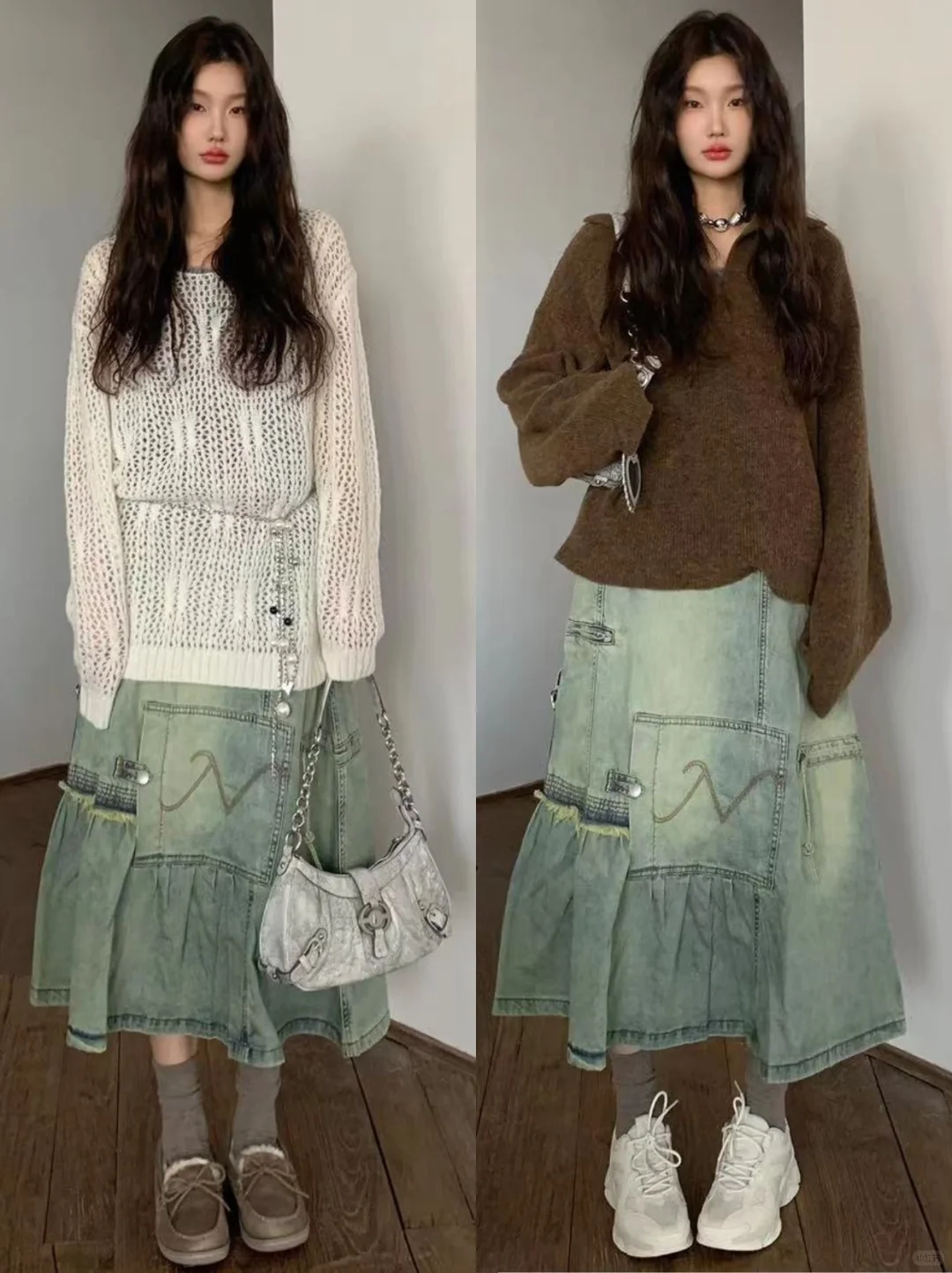 ✨镂空裙+牛仔裤 或是宽松外套+裙子