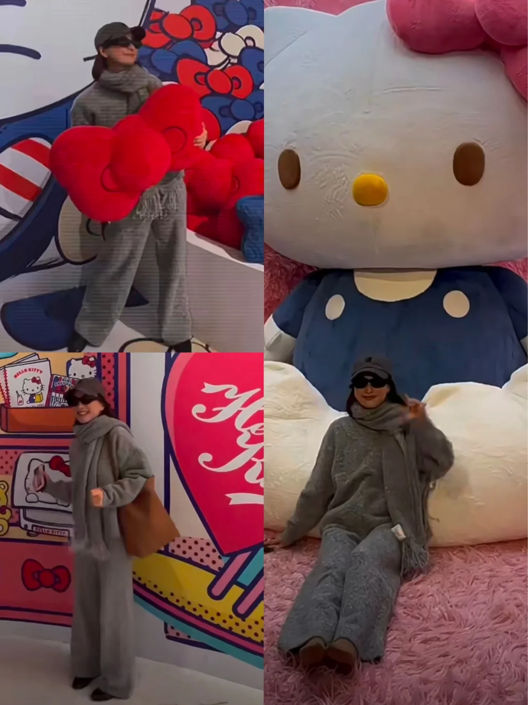 小时候看快本就知道吴昕很喜欢Hello Kitty 印象中有一期她还分享了各种可爱周边 这么多年过去了 她还是很爱💗 看了她的看展Vlog 打扮得美美的去见“老朋友” 又蹦又跳又合照 能感觉到溢出屏幕开心了🥳 全身灰色穿搭搭配棕色包包👜 整体纯色在色彩缤纷的展馆里光影里也很美 ▪️图源-吴昕