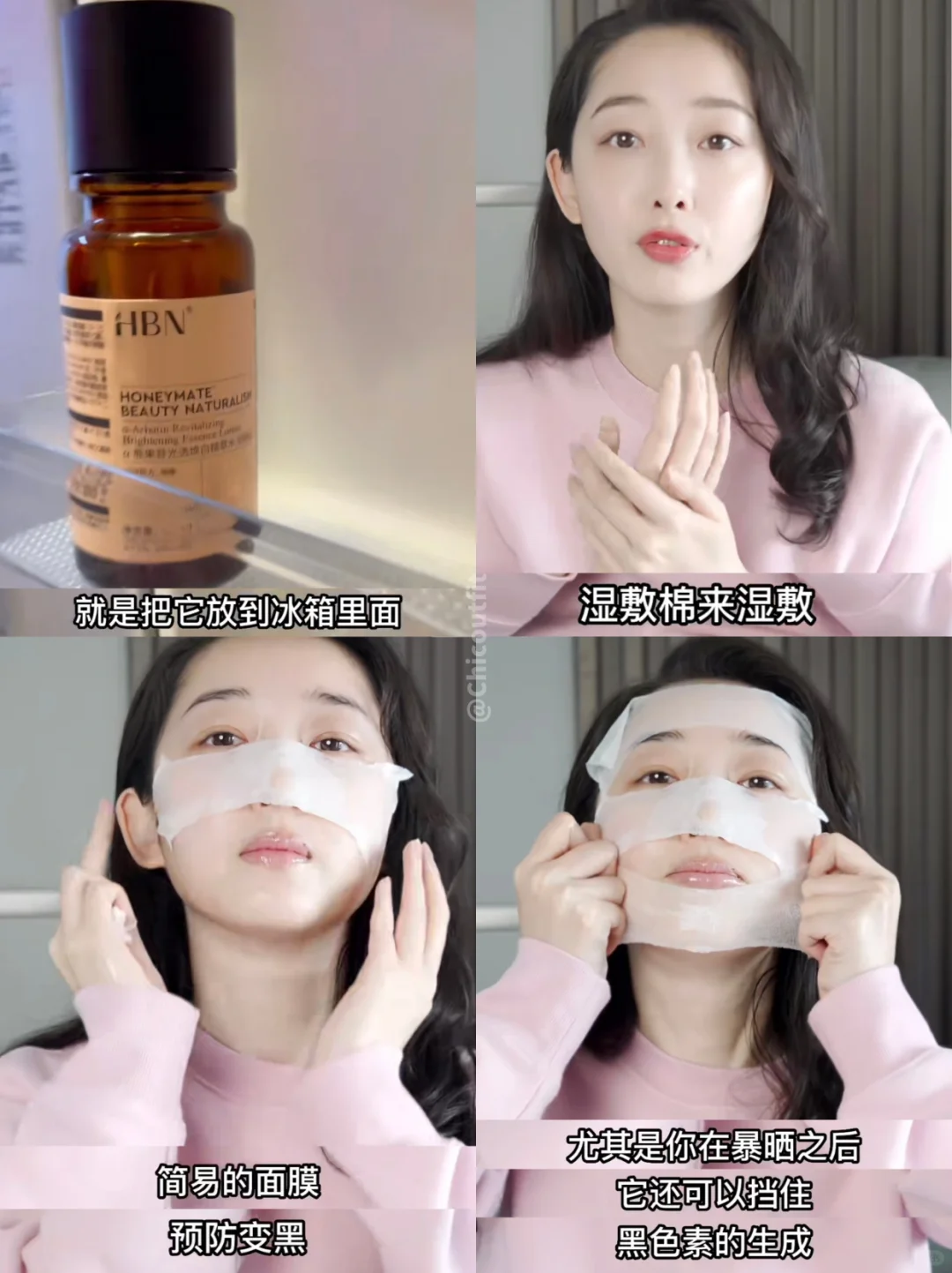 尤其是熬夜拍戏后 用发光水湿敷急救