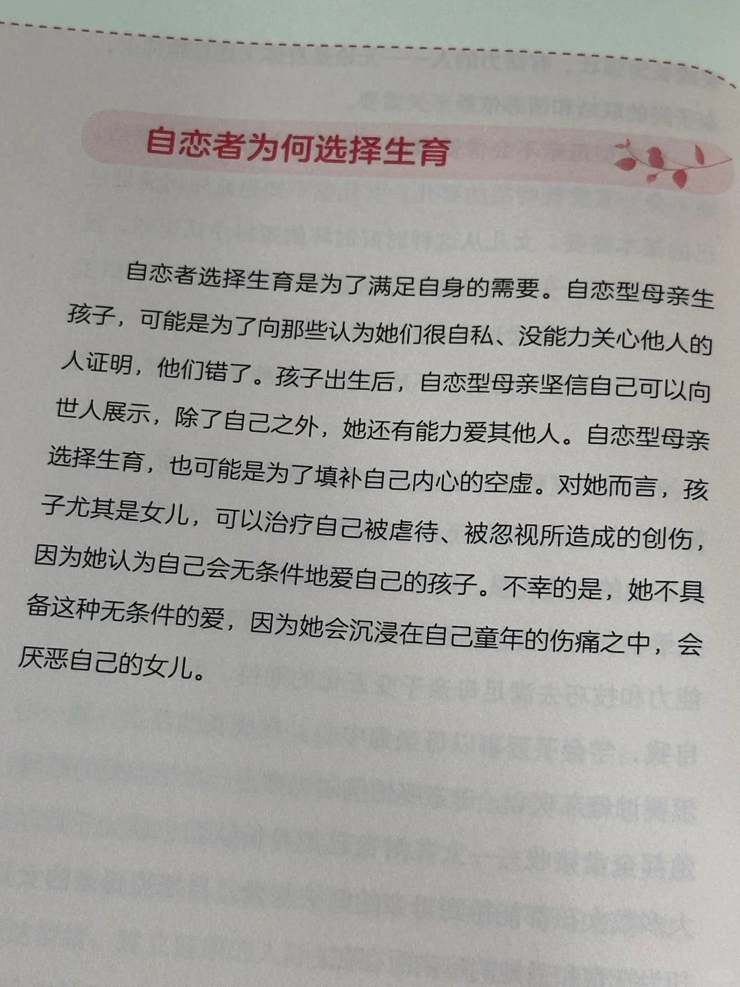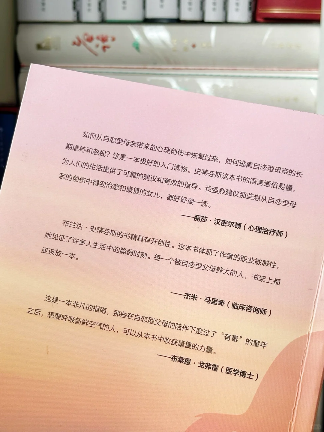 直到最近我读到了这本书才明白,尽管许多人都无法理解,但爱是会带来伤害的。越面对重要的亲密关系,我们越容易成为情感的俘虏,并在不知不觉中将伤害传递给自己的下一代。施加伤害的人认为自己没错,受到伤害的人反而要去寻找自责的理由,哪怕是本应亲密无间的母女之间,也会出现这种情况。爱一旦超出适当的界限,就会变成一种压力和控制。