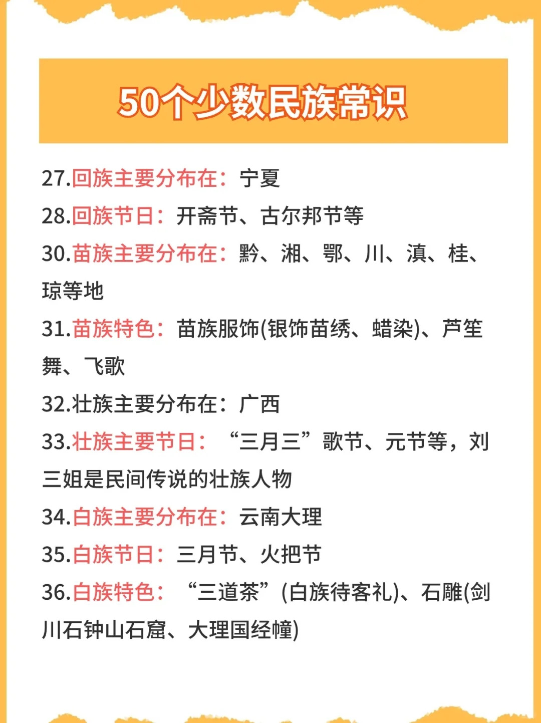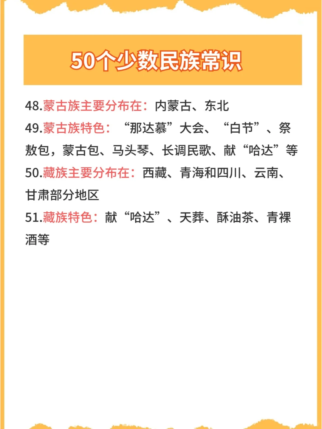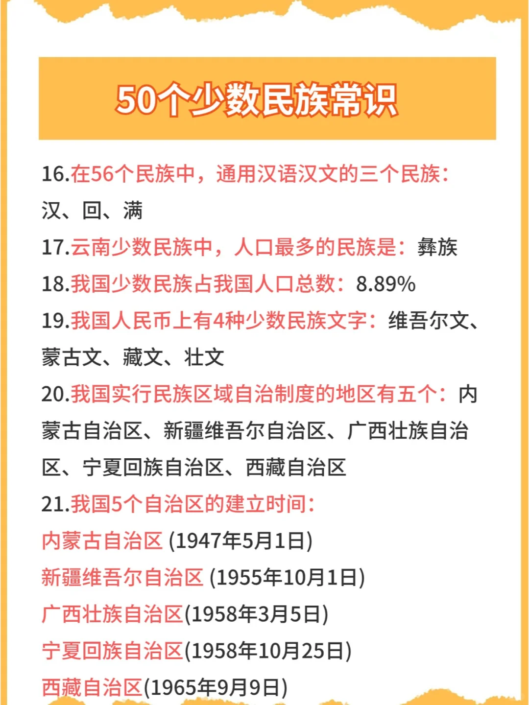 关于少数民族的知识,在公考、事业编考试中考察到的不在少数,今天整理了相关的50个少数民族常识,速度码起来学习。
