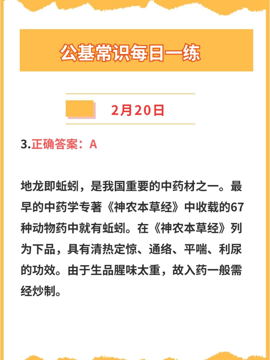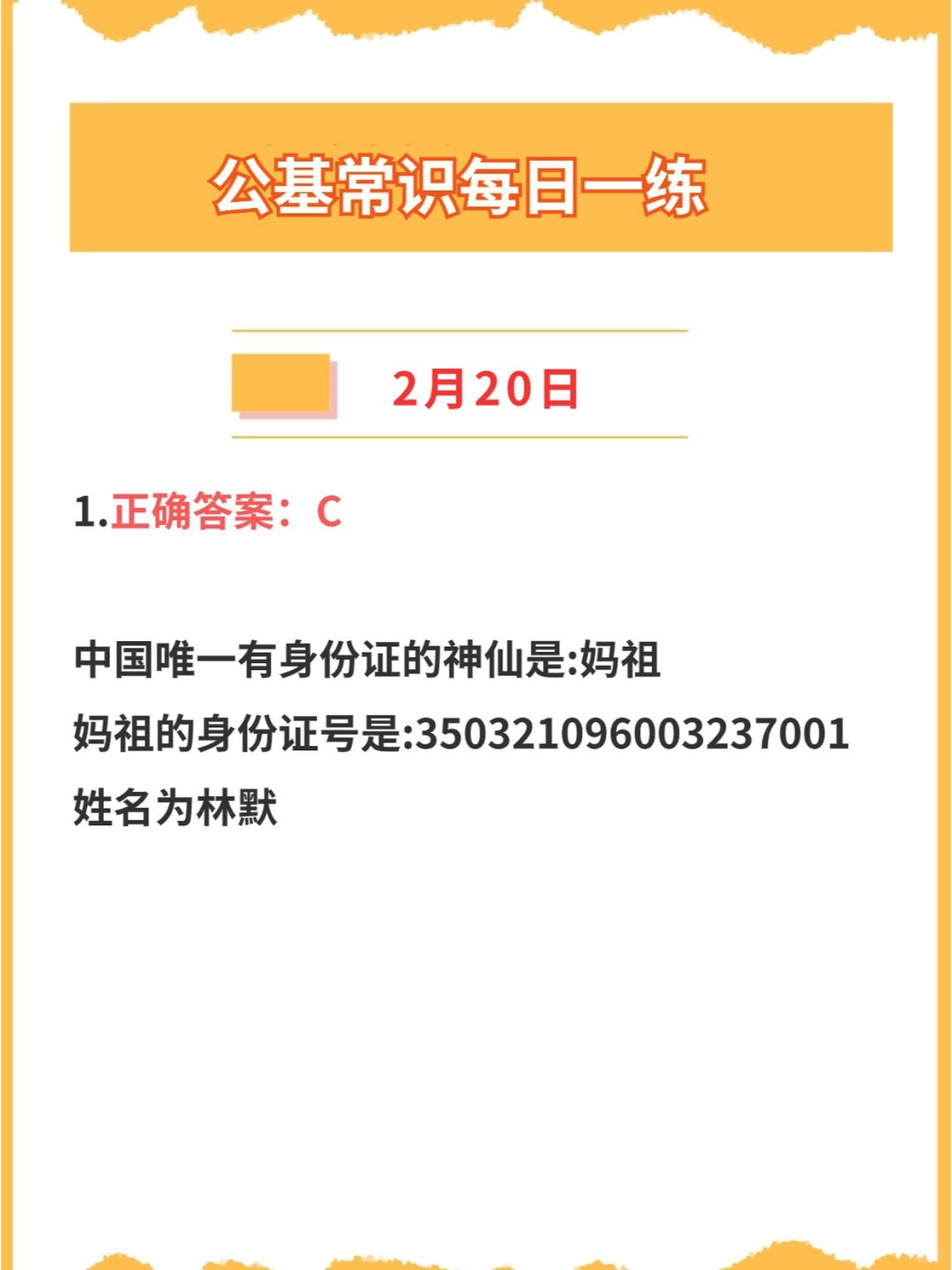 1.中国唯一有身份证的神仙是 A.女娲 B.伏羲 C.妈祖 D.观音 2.被称为诗豪的是谁 A.李贺 B.贺知章 C.白居易 D.刘禹锡 3.中医的“地龙”是指: A.蚯蚓 B.蜈蚣 C.蜥蜴 D.蝎子