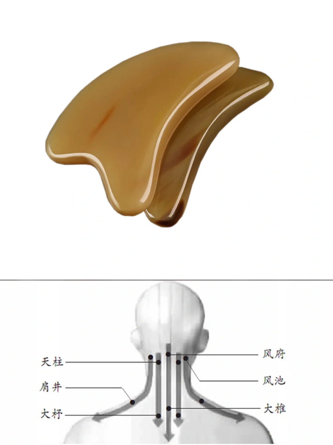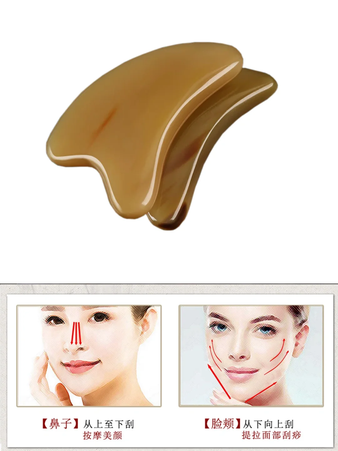 ①、首先用手把牛角刮痧板子的污点去除一下。